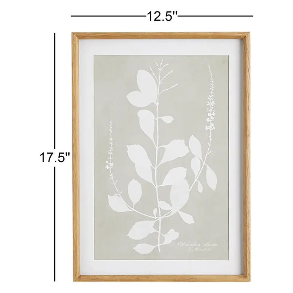 With a soft taupe background and silhouetted foliage forms, this simple composition of coordinating prints is a beautiful addition to any space. Finished off with beveled cardboard mats and warm wood frames, they are perfect for a powder room, kitchen, or den.