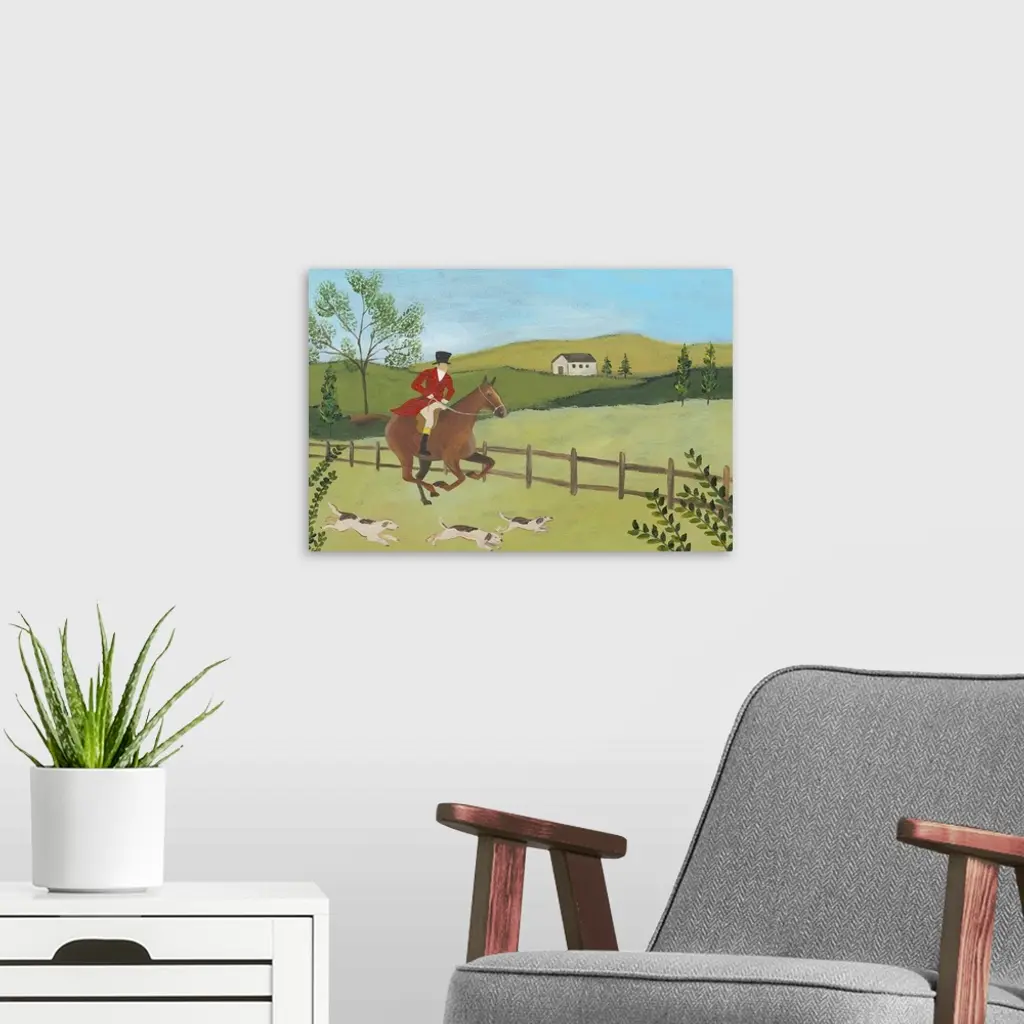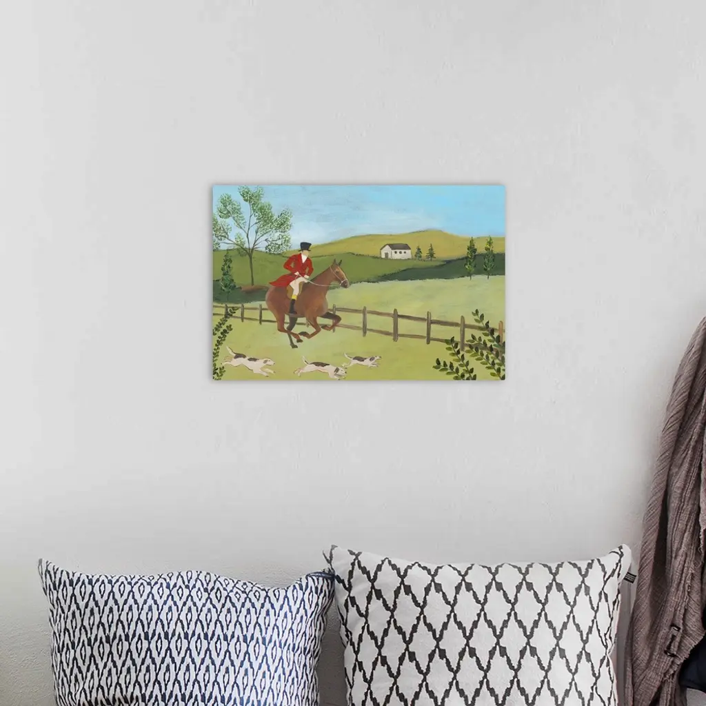 Folk Art Fox Hunt III wall art for home and office decor. Discover canvas art prints, photos, mural, big canvas art and framed wall art in GreatBigCanvas.com's varied collections.