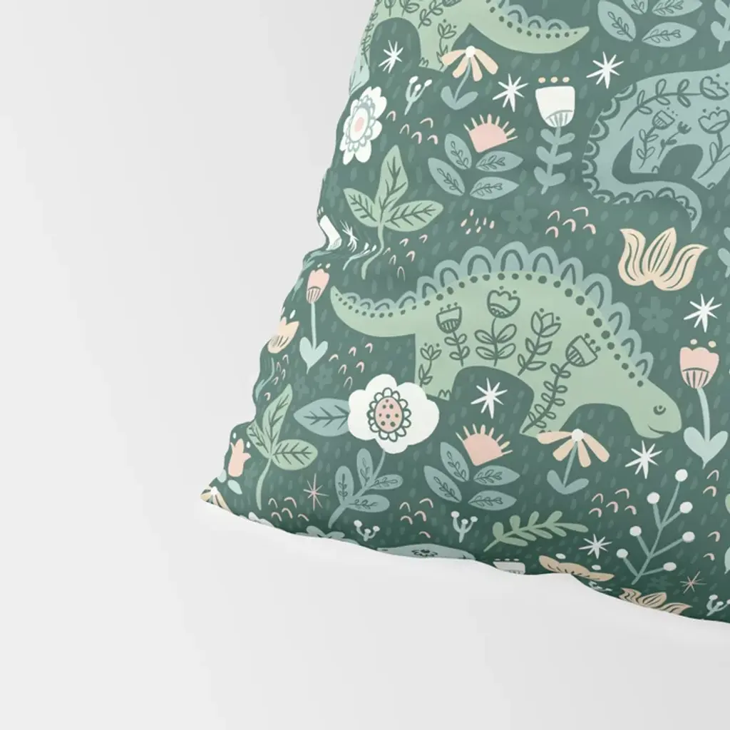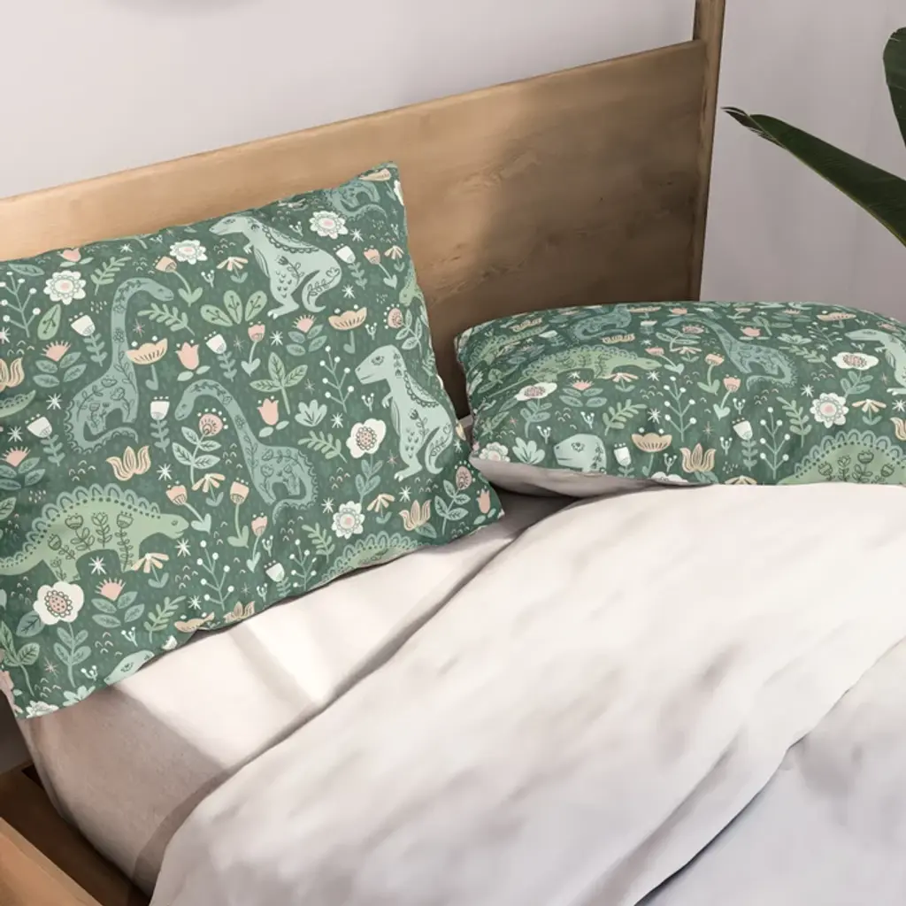 Folk Floral Dinosaur Pillow Sham
