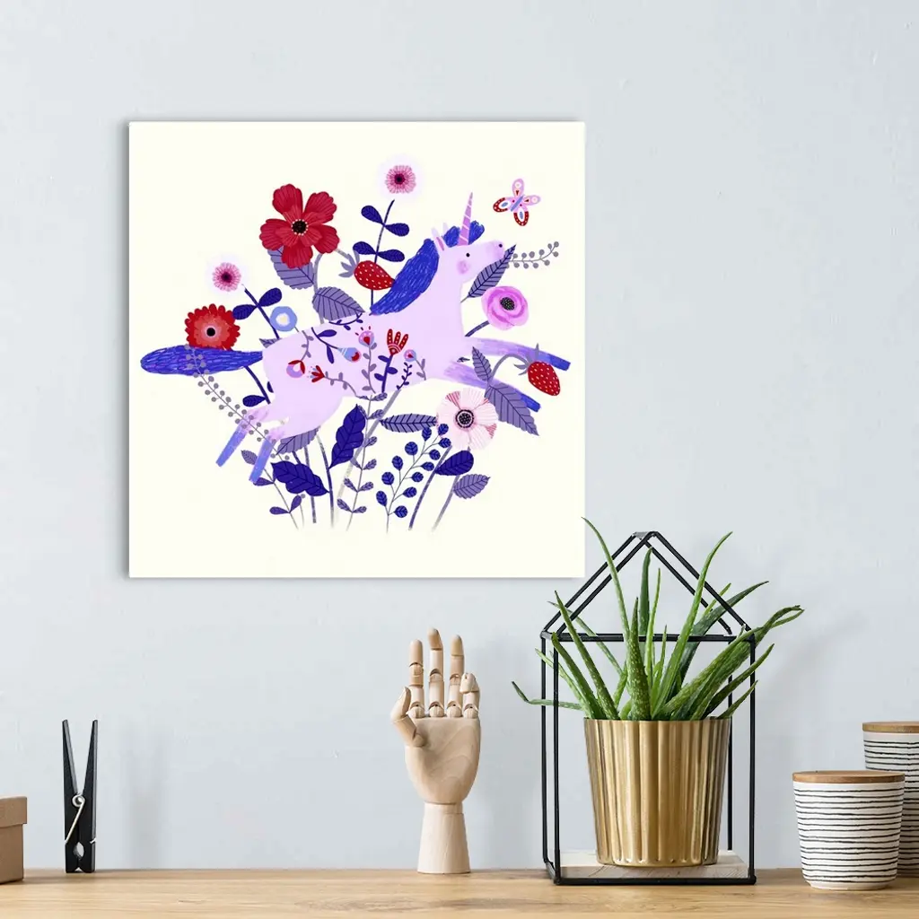 Folk Unicorn I wall art for home and office decor. Discover canvas art prints, photos, mural, big canvas art and framed wall art in GreatBigCanvas.com's varied collections.
