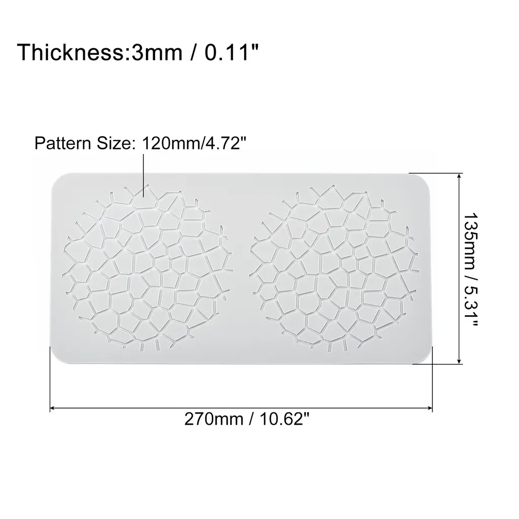 Advantage:Note: They are very fragile once they cool down (which is very fast) so handle them gently and store them in an airtight container to preserve crisp.Material - Our hollow fondant lace mould is made of silicone material, soft and reliable, resistant to cracks, tears, and scratches, and ensures long-term use. It is highly pliable and can be easily bent, twisted, or folded without losing its shape.Easy To Use - First of all, spray some oil on the mould for easy release. Second, Pour the material into the mould and spread evenly. Then, simply put it in the microwave for a few minutes. Finally, you can take out the finish product(Took about 6-7 min at 350F plus convection).Easy To Release and Quick Cleanup - The lightweight design makes it easy to use and very easy to release the mould. The hole for creating the batter is expected shallow making the final piece extremely delicate. Due to the non-stick surface of our silicone mould, you can choose hand wash or dishwasher use, you'll have more time.Wide Application - Our hollow fondant lace mould are practical kitchen tools, suitable for cake decoration, wax melting, homemade soap, resin casting, chocolate, resin clay, concrete etc. Great for birthdays, wedding party, family gatherings, etc.Specification:Material: SiliconeColor: GreyTotal Size: 270*135*3mm /10.62inch x 11.18inch x 0.11 inch(L*W*T); Pattern Size: 120mm/4.72inchPackage Included: 1 pieces of fondant mould