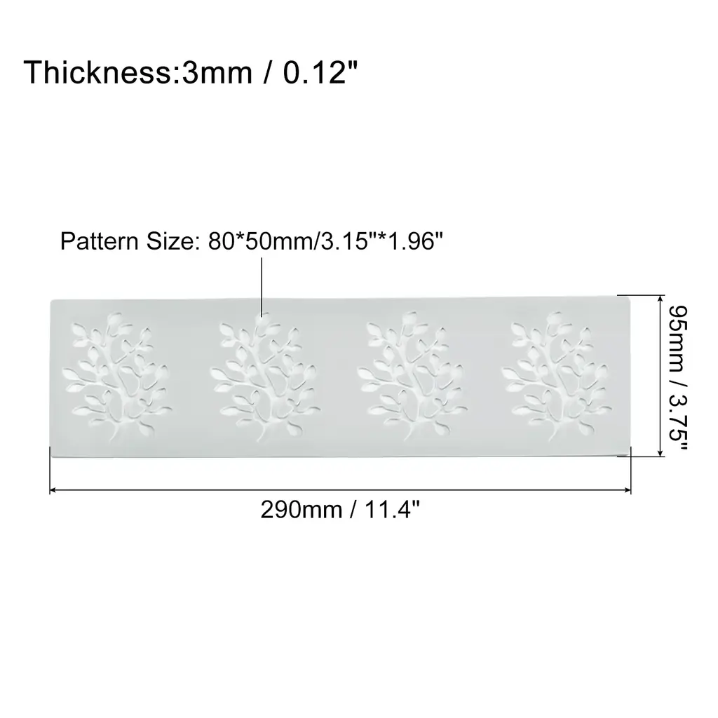 Advantage:Note: They are very fragile once they cool down (which is very fast) so handle them gently and store them in an airtight container to preserve crisp.Material - Our hollow fondant lace mould is made of silicone material, soft and reliable, resistant to cracks, tears, and scratches, and ensures long-term use. It is highly pliable and can be easily bent, twisted, or folded without losing its shape.Easy To Use - First of all, spray some oil on the mould for easy release. Second, Pour the material into the mould and spread evenly. Then, simply put it in the microwave for a few minutes. Finally, you can take out the finish product(Took about 6-7 min at 350F plus convection).Easy To Release and Quick Cleanup - The lightweight design makes it easy to use and very easy to release the mould. The hole for creating the batter is expected shallow making the final piece extremely delicate. Due to the non-stick surface of our silicone mould, you can choose hand wash or dishwasher use, you'll have more time.Wide Application - Our hollow fondant lace mould are practical kitchen tools, suitable for cake decoration, wax melting, homemade soap, resin casting, chocolate, resin clay, concrete etc. Great for birthdays, wedding party, family gatherings, etc.Specification:Material: SiliconeColor: GreyTotal Size: 290*95*3mm /11.4 inch x 3.75 inch x 0.12 inch(L*W*T); Pattern Size: 80*50mm/3.15inch*1.96inchPackage Included: 1 pieces of fondant mould