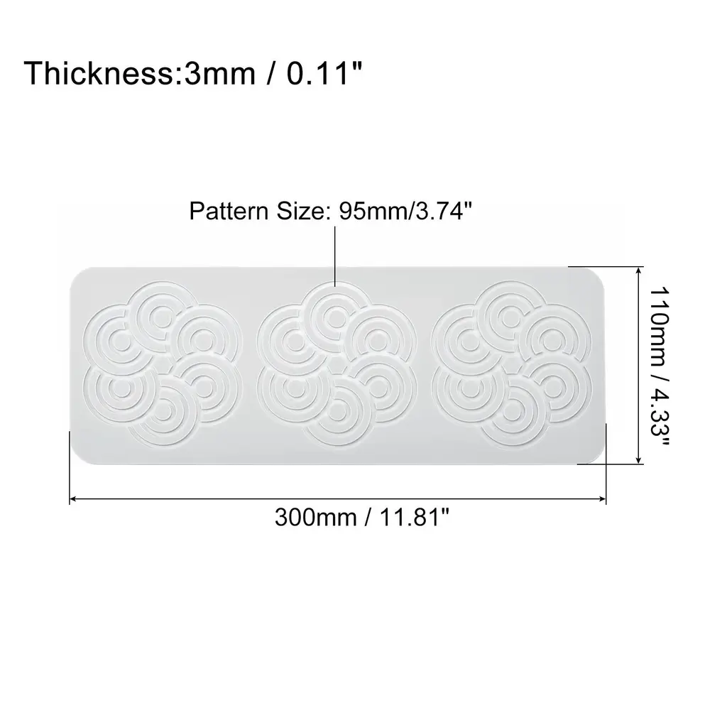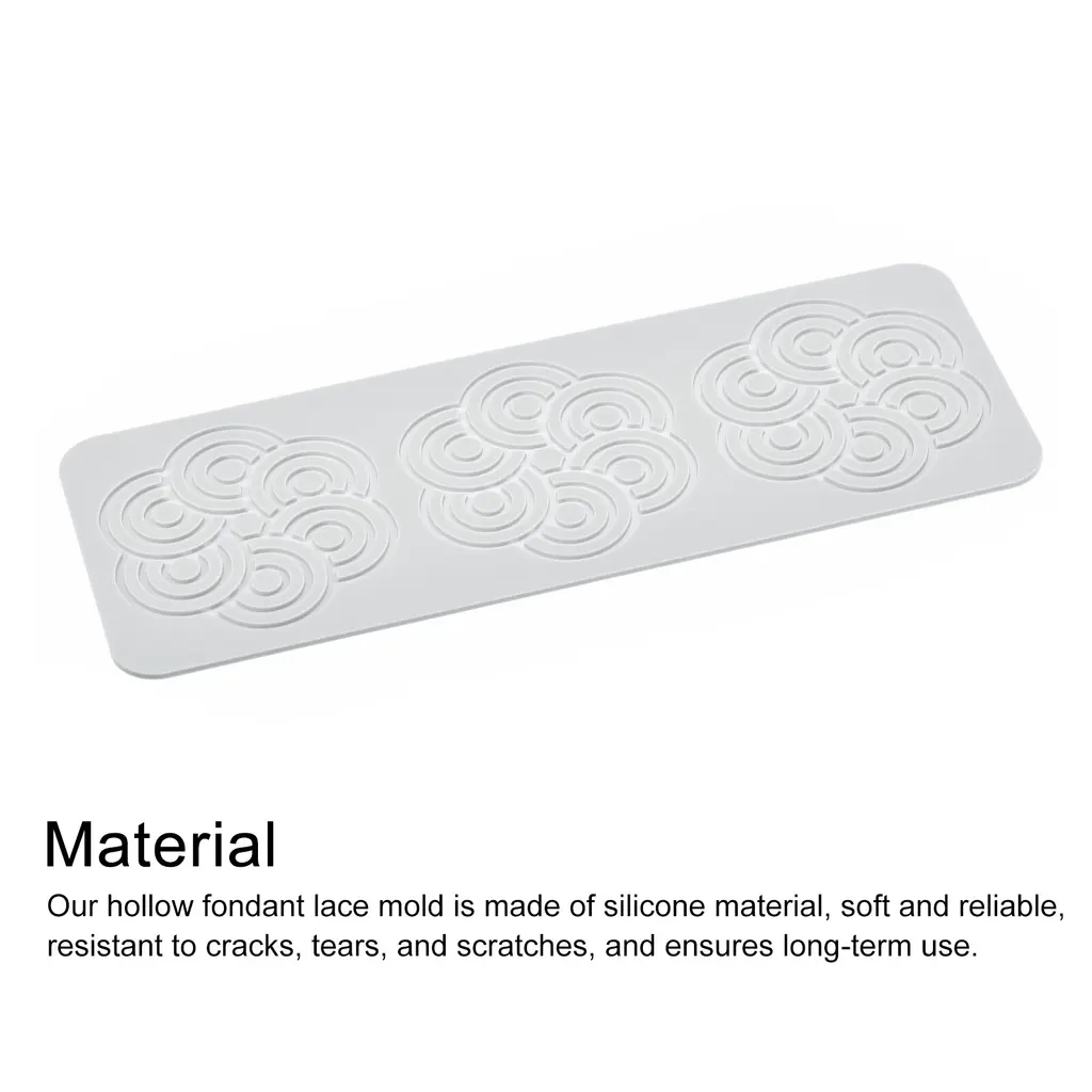 Advantage:Note: They are very fragile once they cool down (which is very fast) so handle them gently and store them in an airtight container to preserve crisp.Material - Our hollow fondant lace mould is made of silicone material, soft and reliable, resistant to cracks, tears, and scratches, and ensures long-term use. It is highly pliable and can be easily bent, twisted, or folded without losing its shape.Easy To Use - First of all, spray some oil on the mould for easy release. Second, Pour the material into the mould and spread evenly. Then, simply put it in the microwave for a few minutes. Finally, you can take out the finish product(Took about 6-7 min at 350F plus convection).Easy To Release and Quick Cleanup - The lightweight design makes it easy to use and very easy to release the mould. The hole for creating the batter is expected shallow making the final piece extremely delicate. Due to the non-stick surface of our silicone mould, you can choose hand wash or dishwasher use, you'll have more time.Wide Application - Our hollow fondant lace mould are practical kitchen tools, suitable for cake decoration, wax melting, homemade soap, resin casting, chocolate, resin clay, concrete etc. Great for birthdays, wedding party, family gatherings, etc.Specification:Material: SiliconeColor: GreyTotal Size: 300*110*3mm/23.34inch x 3.93inch x 0.11 inch(L*W*T); Pattern Size: 95mm/3.4inchPackage Included: 1 pieces of fondant mould