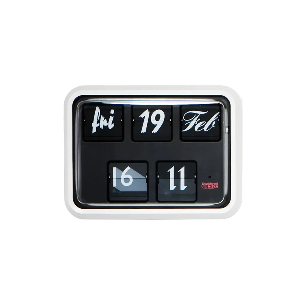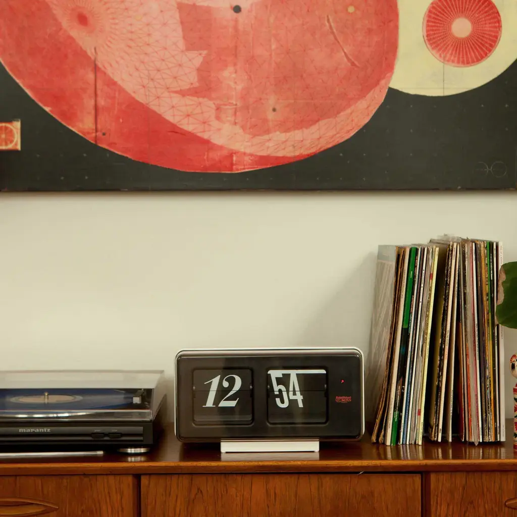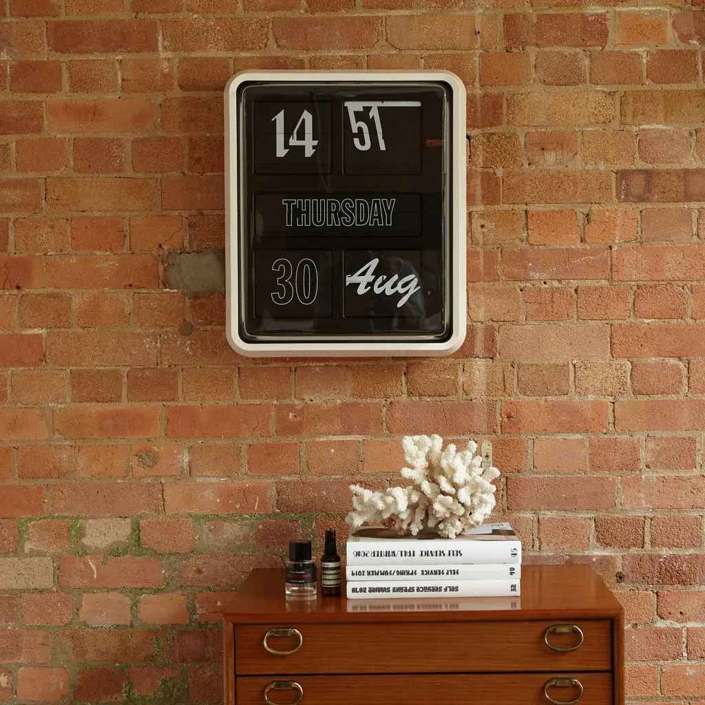 With midcentury overtones, Sebastian Wrong’s Font Clock features an ever-changing display as it flips through 12 different typefaces. In graphic black and white, it comes in 3 sizes and is battery-powered. One smaller model is designed to sit on a shelf and 2 larger versions are meant to be wall-mounted.