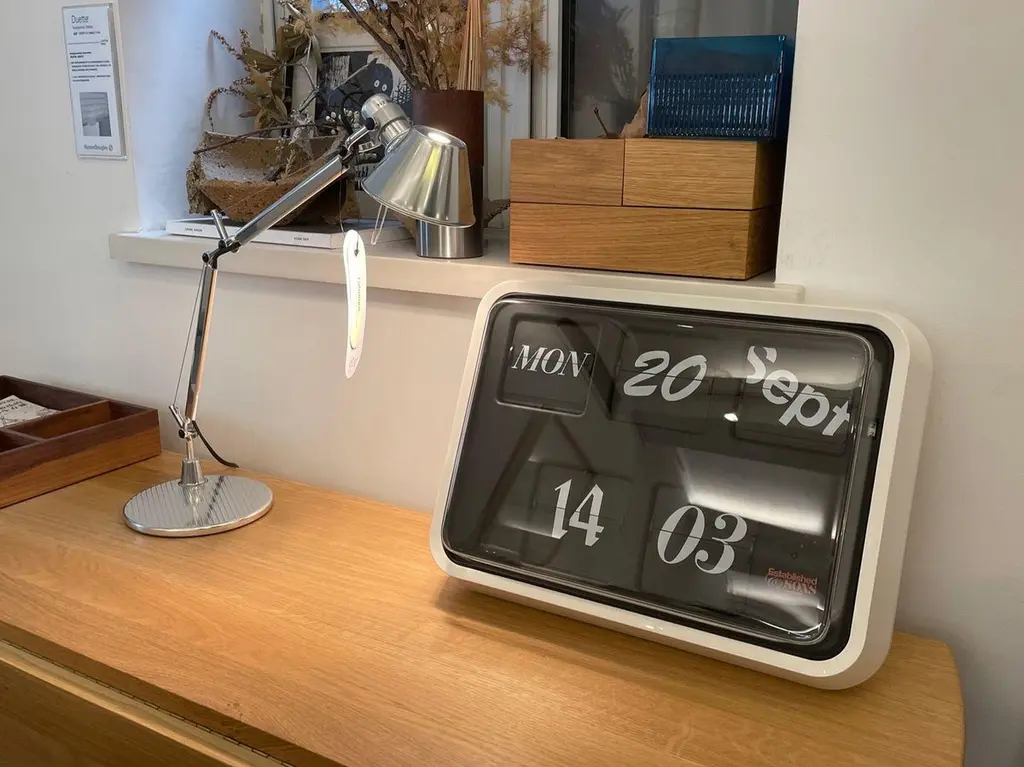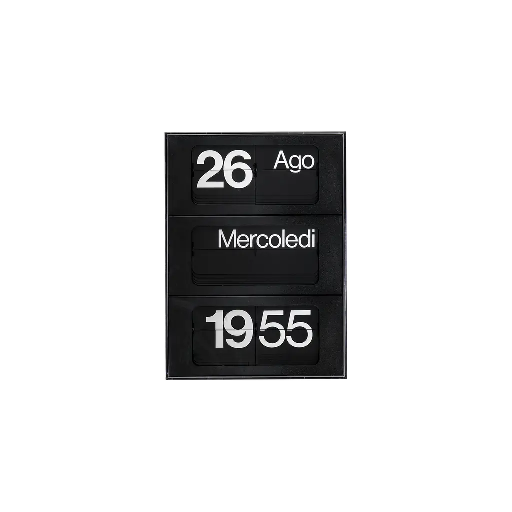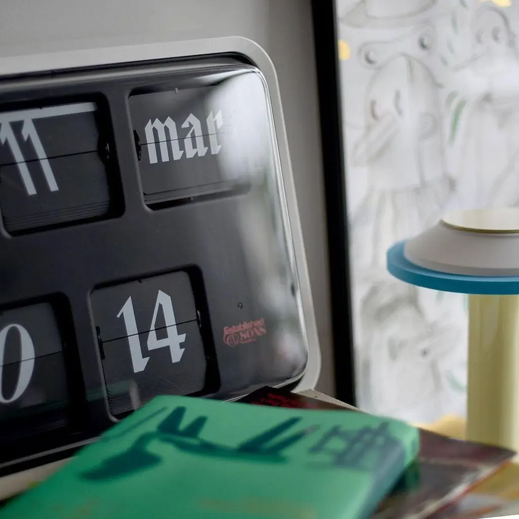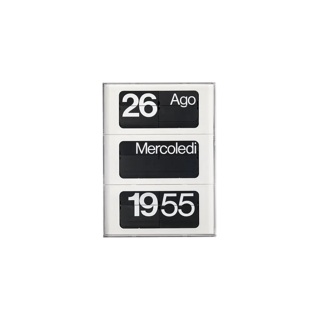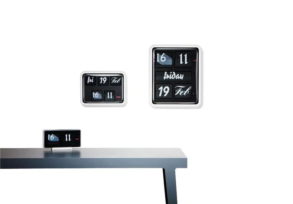 An instant design icon, Sebastian Wrong’s Font Clock features an ever-changing display that uses twelve different type faces and a flip mechanism in a design that is both nostalgic and contemporary.The iconic calendar clock, with its distinctive form and flip mechanism, has an established following in design circles. Sebastian Wrong deliberately increases our attraction to its retro look by introducing an ever-changing display. The Font Clock employs twelve different typefaces. These range from modern renditions of classic type families like Bodoni to 20th century classics like Franklin Gothic and Helvetica.DimensionsG100 small: L 290mm × D 110mm × H 140mm, 1.2kgG225 medium: L 420mm × D 120mm × H 320mm, 2.4kgG270 large: L 475mm × D 160mm × H 565mm, 5.0kgMaterials White ABS plastic, clearview perspex, battery poweredColours.White.