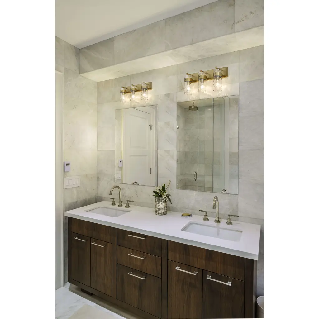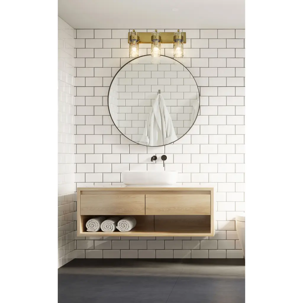 Equal parts stylish and functional, this three-light vanity fixture is alluring. The cylindrical glass shade is accented with a ripple texture in a romantic design. Steel construction in a polished nickel finish allows it to pair with many types of decor ranging from farmhouse to modern.