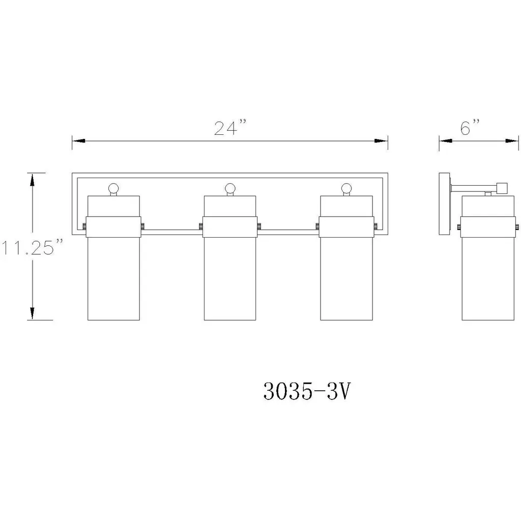Fontaine 3 Light 24 Inch Rubbed Brass Vanity Wall Light