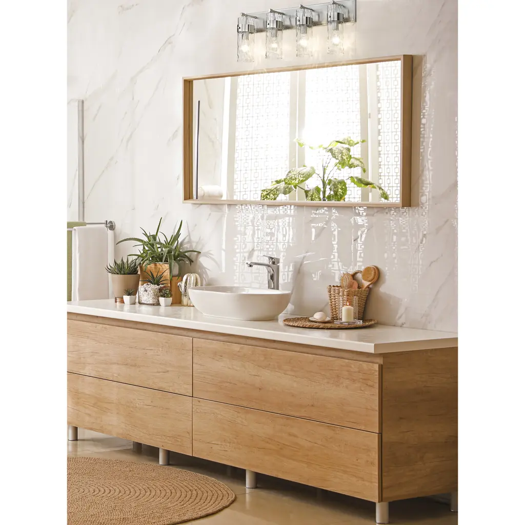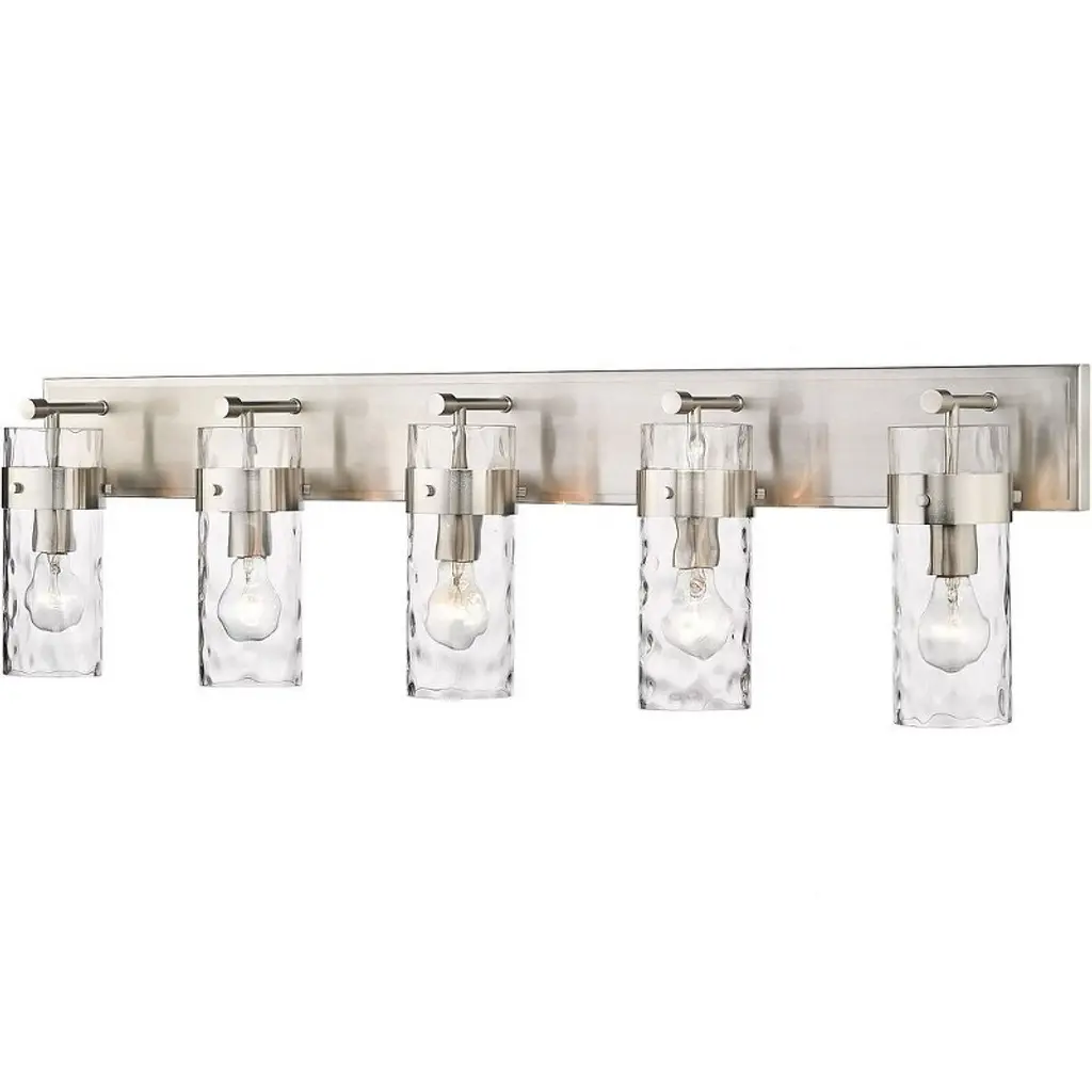 Equal parts stylish and functional, this three-light vanity fixture is alluring. The cylindrical glass shade is accented with a ripple texture in a romantic design. Steel construction in a rubbed brass finish allows it to pair with many types of decor ranging from farmhouse to modern.
