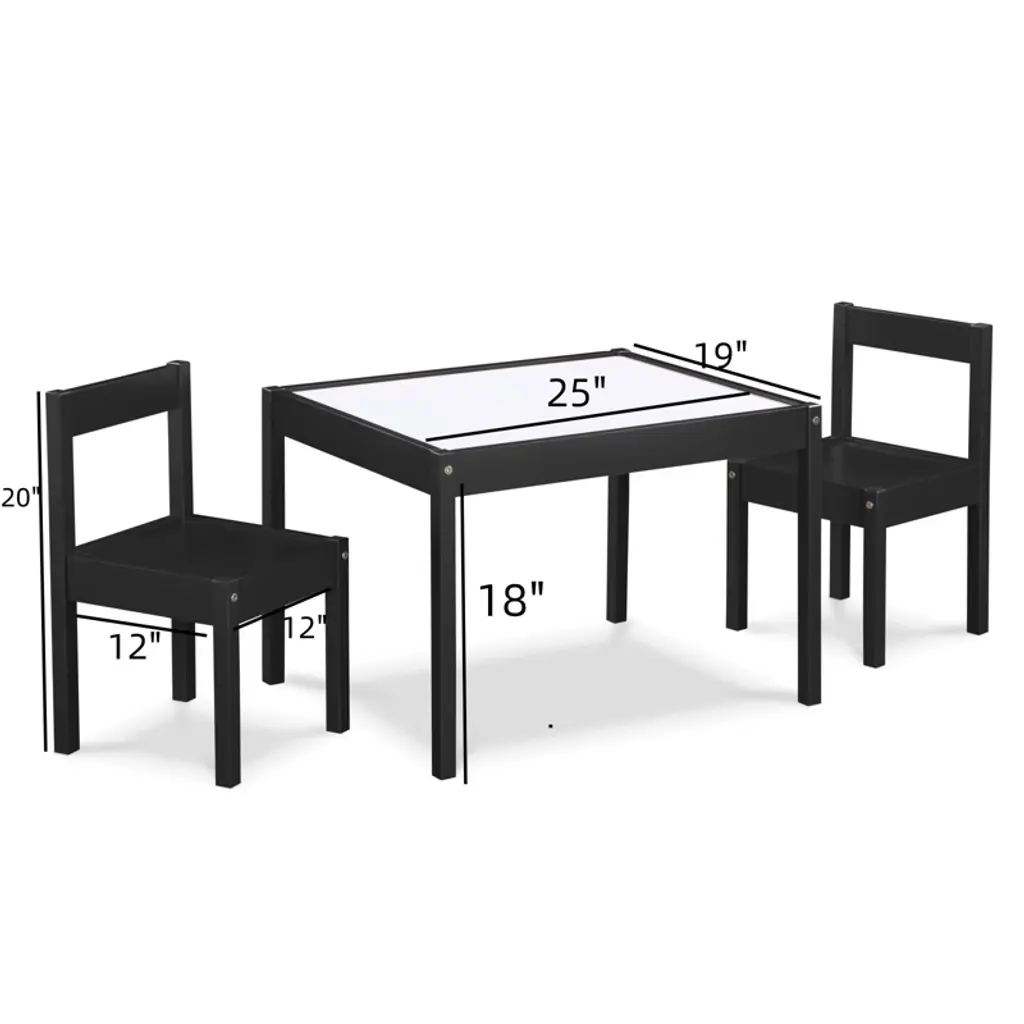 Fontoi Kids Table Sets, 3-piece Toddler Table Sets With Dry Erase Table Top, Children Activity Table Sets For Playrooms, Black, 19"*18"*25"