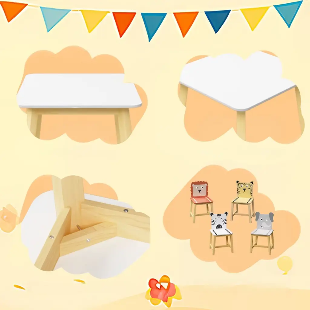 This charming set includes a sturdy table measuring 23.6"*23.6"*19.7", accompanied by four adorable chairs, each sized at 11.9"*12.1"*21.5", perfectly designed for little ones. Featuring playful animal prints, this table set not only adds a fun touch to any space but also promotes creativity and social interaction among toddlers. Assembly is a breeze with detailed instructions and all necessary accessories included.