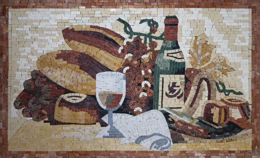 Food Mosaic Art - Wine & Cheese Night - 80cm X 80cm (31" X 31") / With Frame
