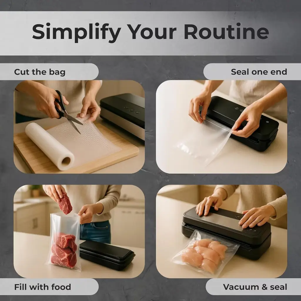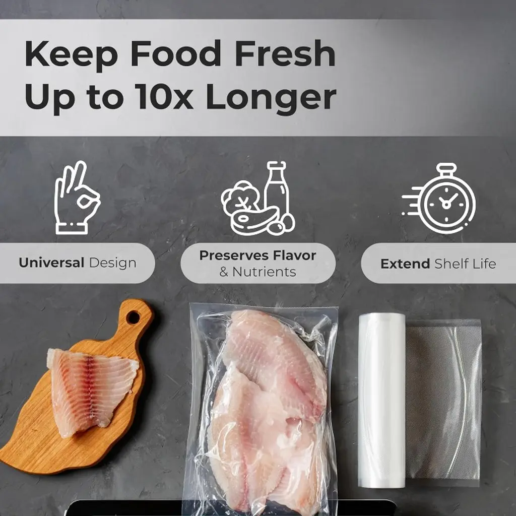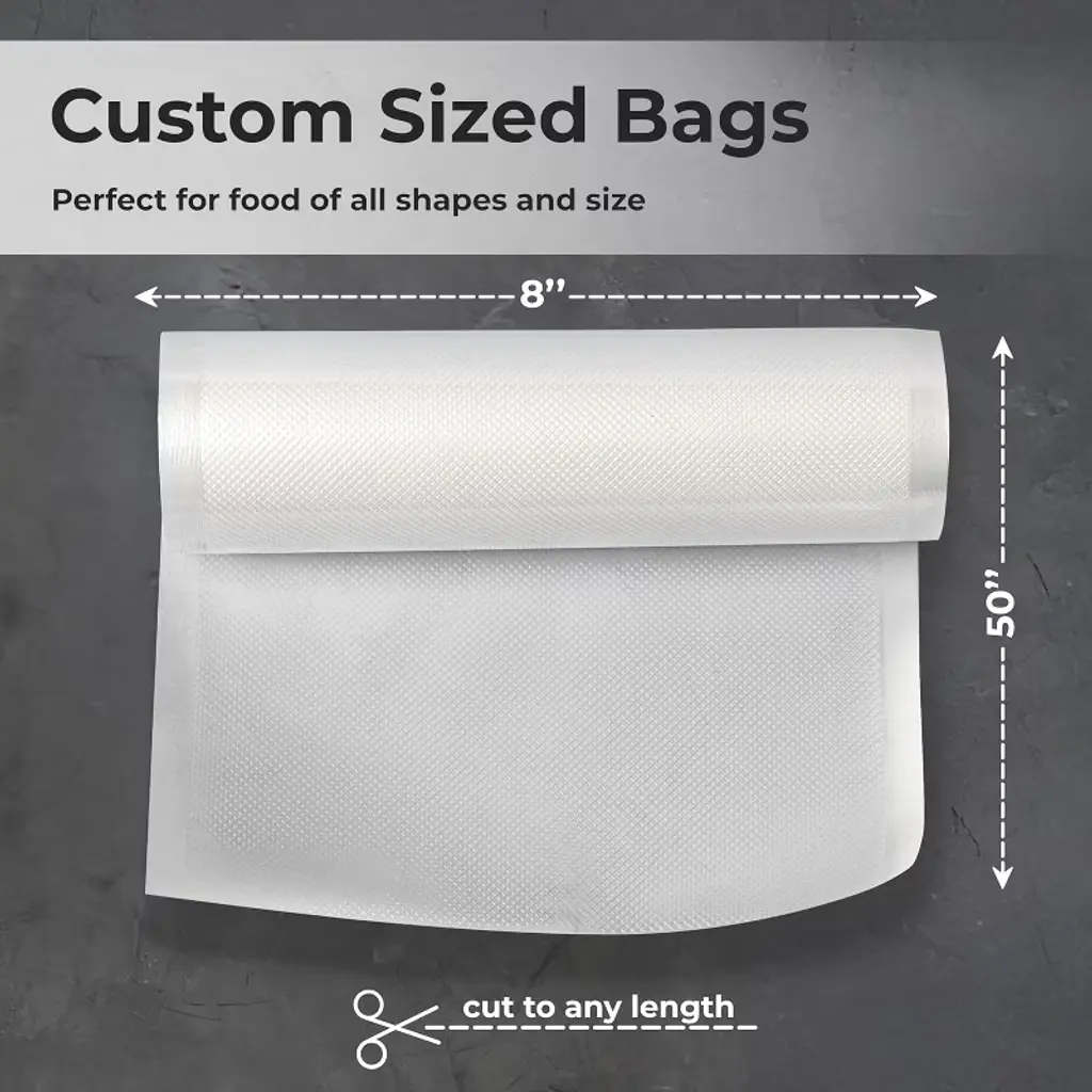 Keep food fresher for longer - vacuum sealing both fresh and frozen food is a great way to Prevent spoiling and freezer burn. Frozen food can last up to ten times longer after being vacuum sealed compared to traditional freezer bags.Keep out moisture and air - each heavy duty bag creates a tight seal when used with a vacuum Sealer machine. The air removal Channels on the embossed edges of the bag allow for the best seal possible, preserving your foods flavor and nutritional value.Custom sized bags - don't waste money having to buy larger freezer bags that take up extra space in your freezer and pantry. Vacuum Sealer bags can be created to the exact size you need for food of all shapes AND sizes.Standard size for maximum compatibility - EverOne vacuum Sealer Rolls are designed to be compatible with most major countertop vacuum Sealer machines.100 feet of vacuum Sealer bags - each order is for two 50' Long Rolls of our vacuum Sealer bags.