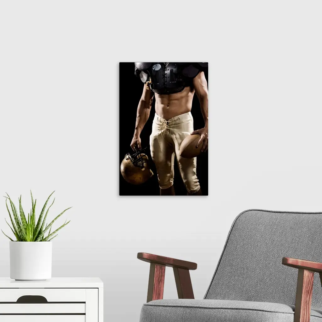 Football player with protective gear, football, and helmet wall art for home and office decor. Discover canvas art prints, photos, mural, big canvas art and framed wall art in GreatBigCanvas.com's varied collections.