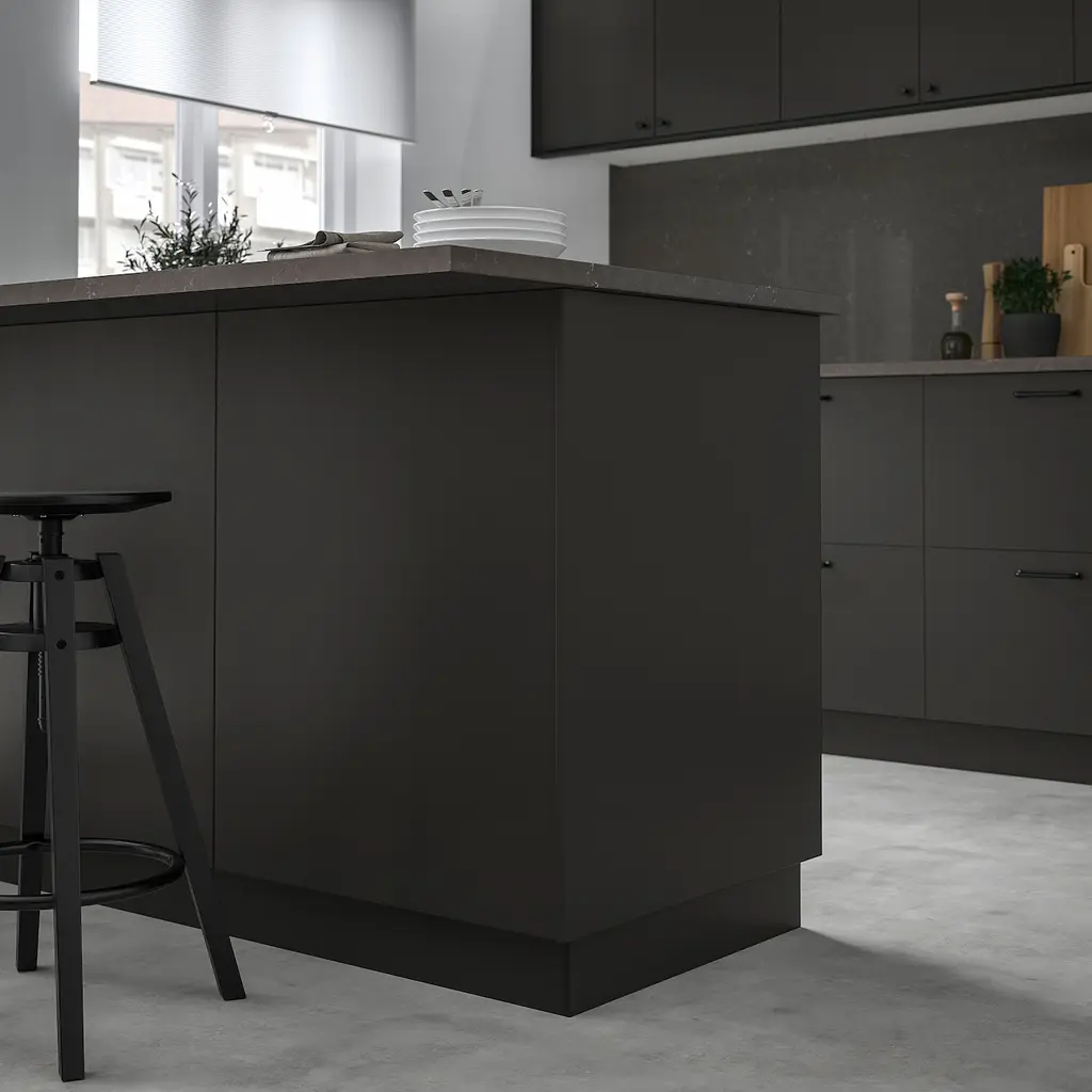 FÖRBÄTTRA Cover panel - matte anthracite 15x31 1/8 ". Choose a cover panel in the same finish as your door for a uniform expression, or mix and match to suit your taste. Made of recycled wood dressed in a foil made mainly of recycled plastic. Fits SEKTION kitchen series.