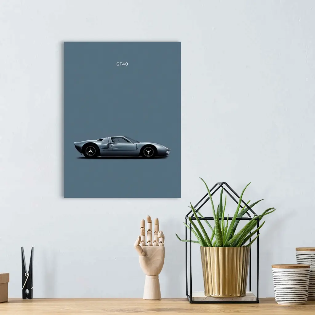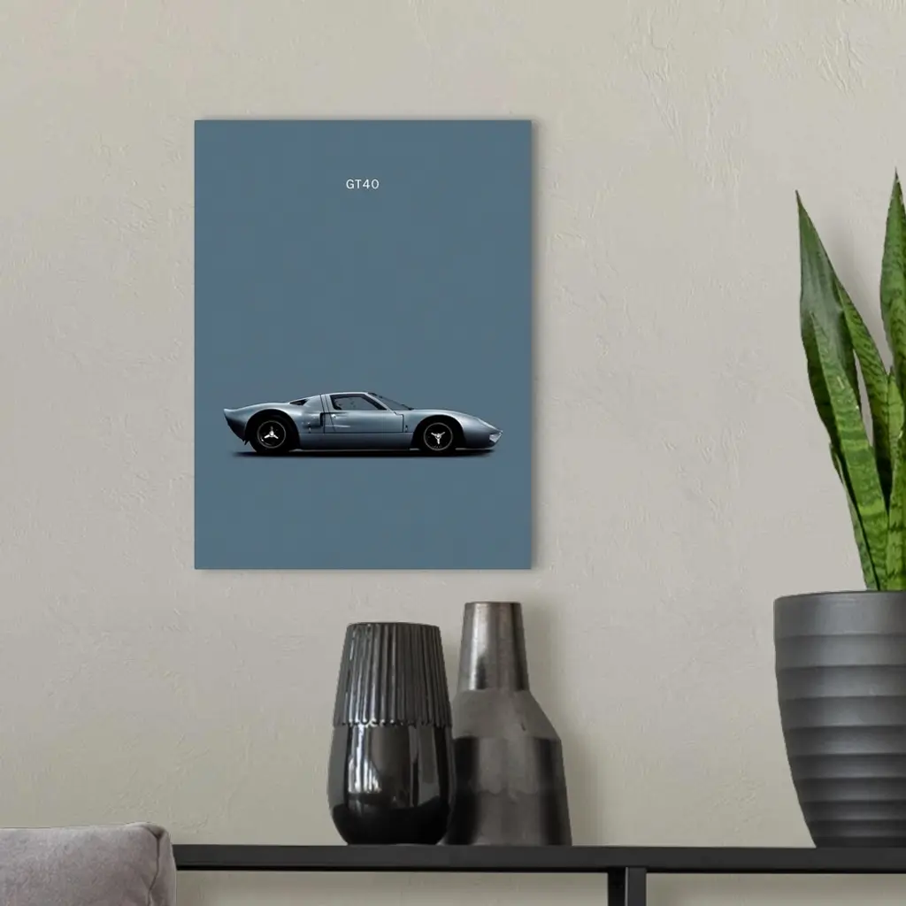 Photograph of a gray Ford GT40 printed on a gray background