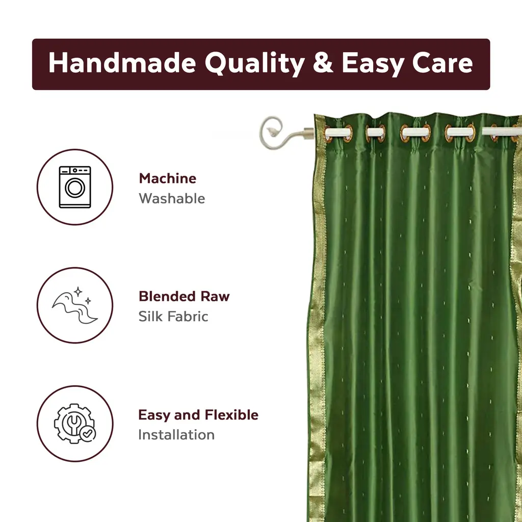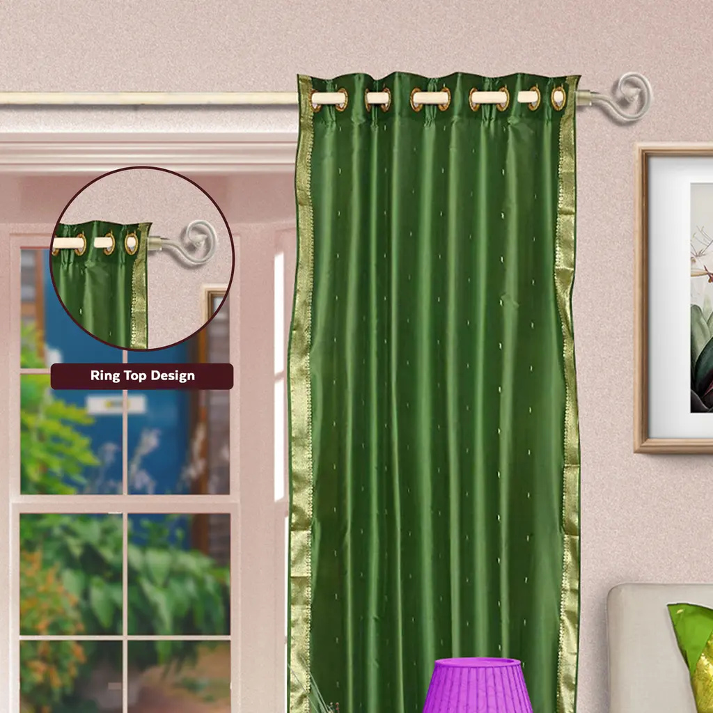 Forest Green Ring Top Sheer Sari Curtain / Drape / Panel - Piece