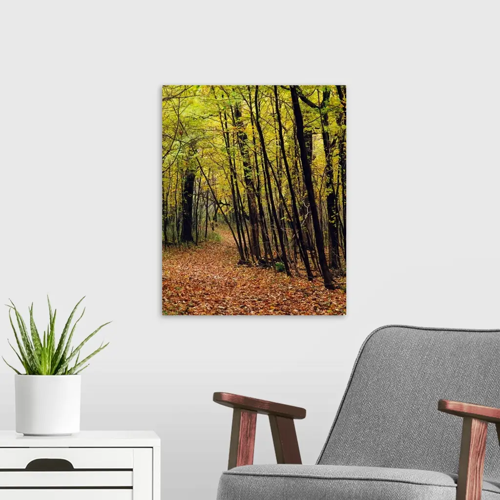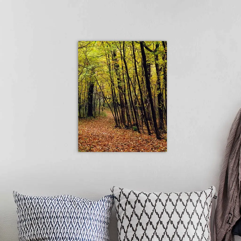 Forest trail through autumn color trees, Myre-Big Island State Park, Minnesota wall art for home and office decor. Discover canvas art prints, photos, mural, big canvas art and framed wall art in GreatBigCanvas.com's varied collections.