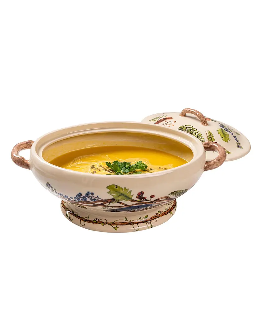 Featuring beautifully rendered tableaus of botanicals, feathers and antlers, this collection brings a charming touch of woodland style to the table.