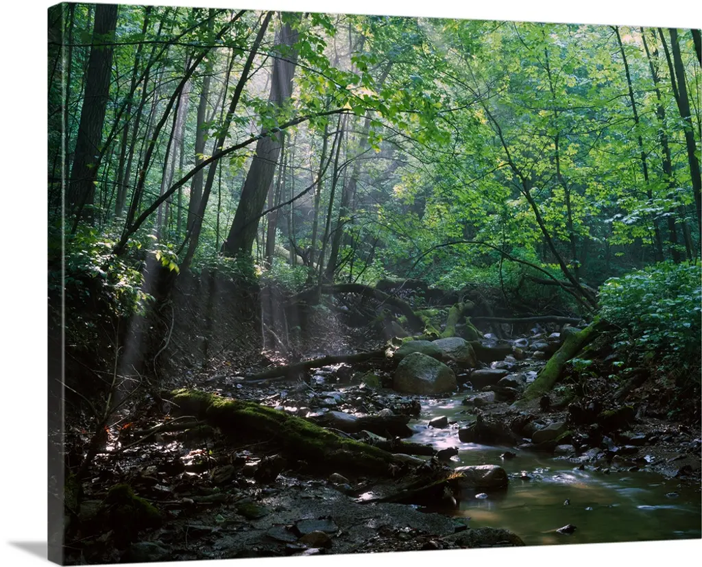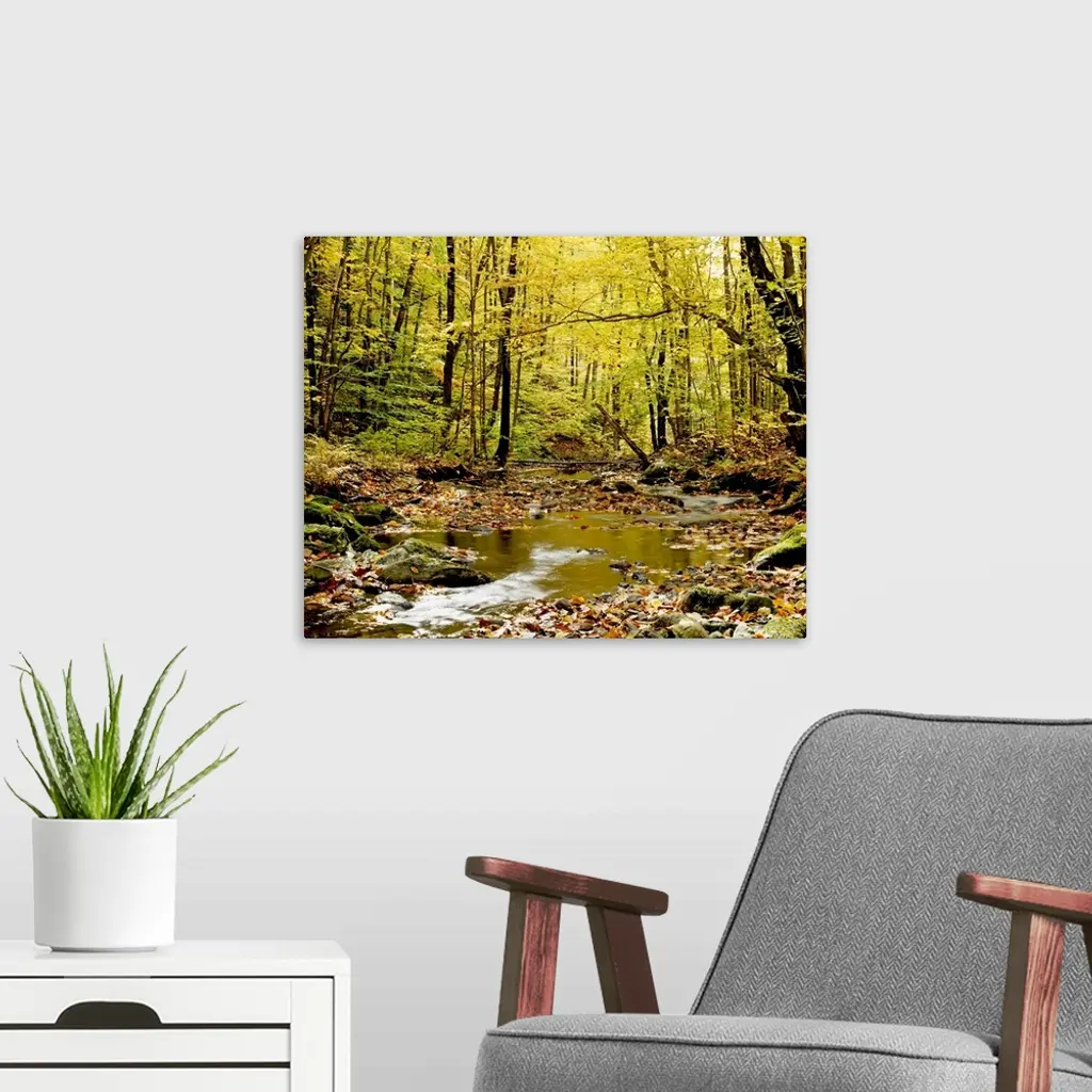 Forest With Creek Flowing Through It wall art for home and office decor. Discover canvas art prints, photos, mural, big canvas art and framed wall art in GreatBigCanvas.com's varied collections.