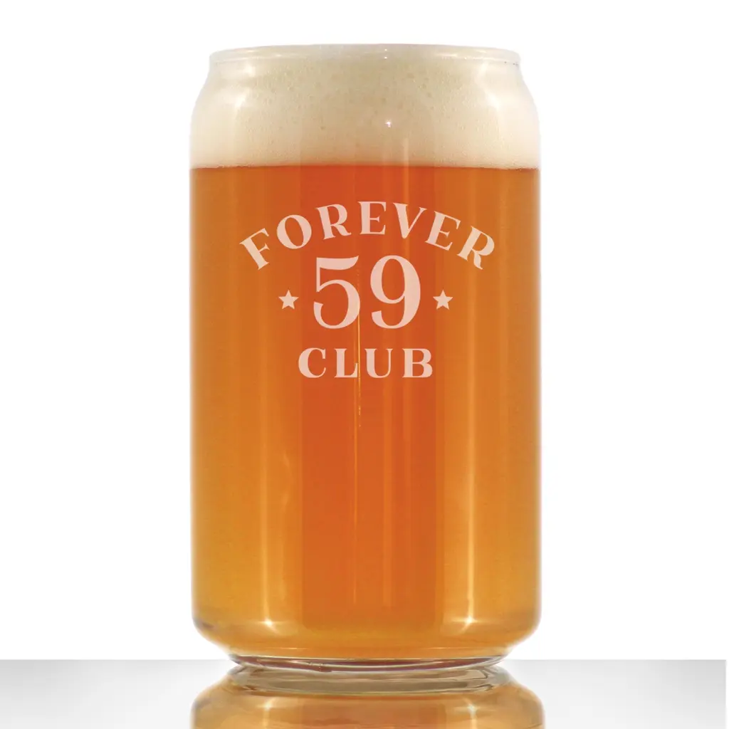 Forever 59 - Beer Can Pint Glass - 60th Birthday Gifts - 16 Ounce - Clear