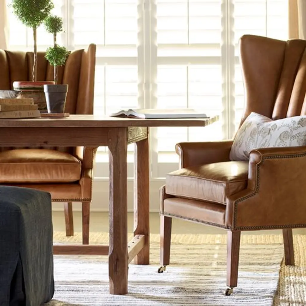 The aptly named Forever Table is certain to become an heirloom. Inspired by antique Old World farm tables and crafted of durable, beautifully figured oak, it comes with two 20-inch leaves that expand it from 84 inches to 124 inches wide.
