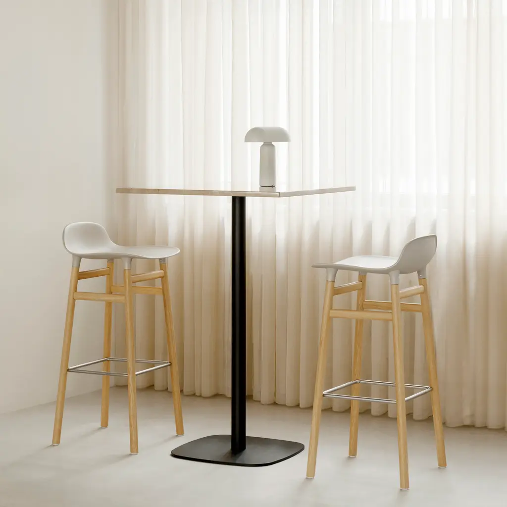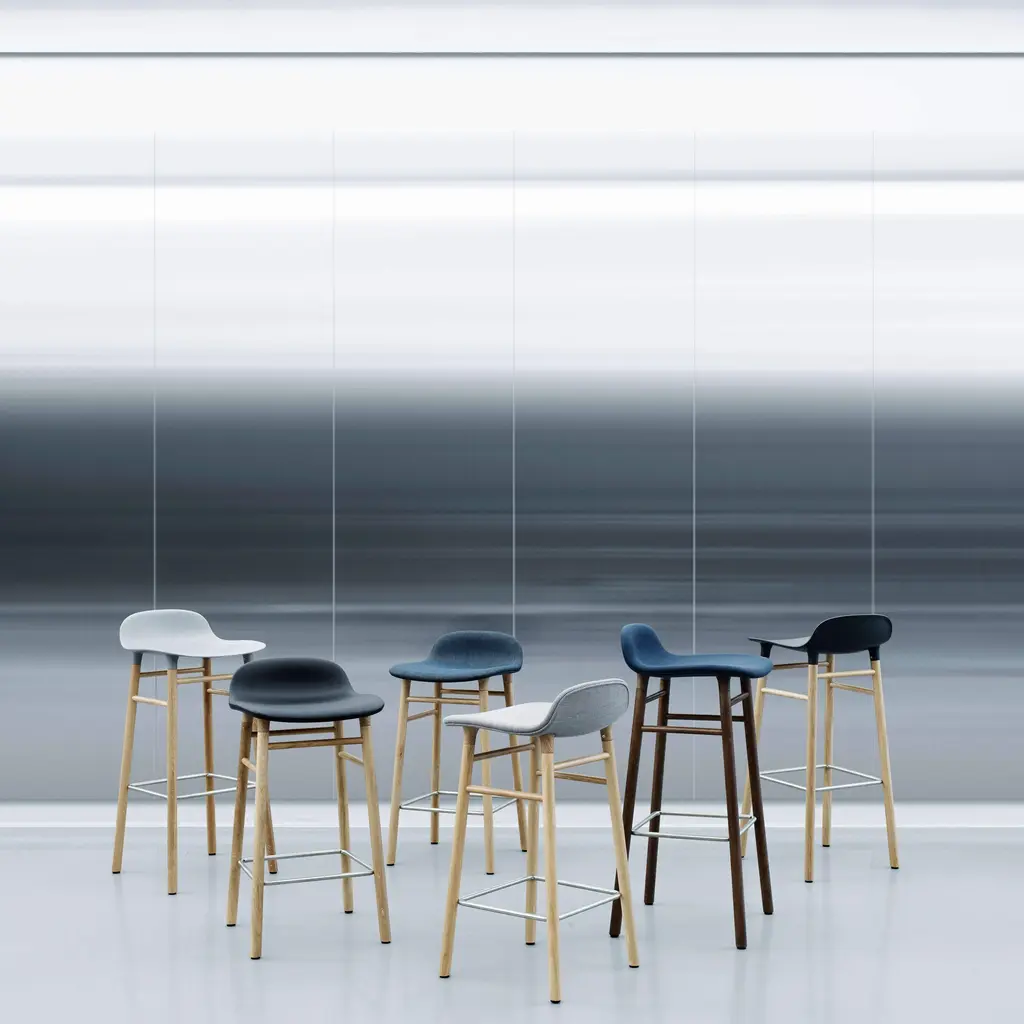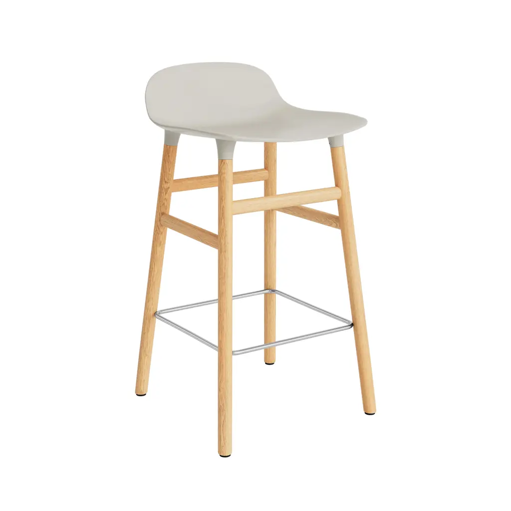 True to Form. All the variations of Danish designer's Simon Legald's Form Collection for Normann Copenhagen hew to his original vision. Here, his seamless polypropylene shell chair morphs into a low-backed stool offered in either counter and bar heights. More than 20 prototypes were sampled over 3 years until arriving at the final variation of molded plastic seat and frameÑshow here in oak.
