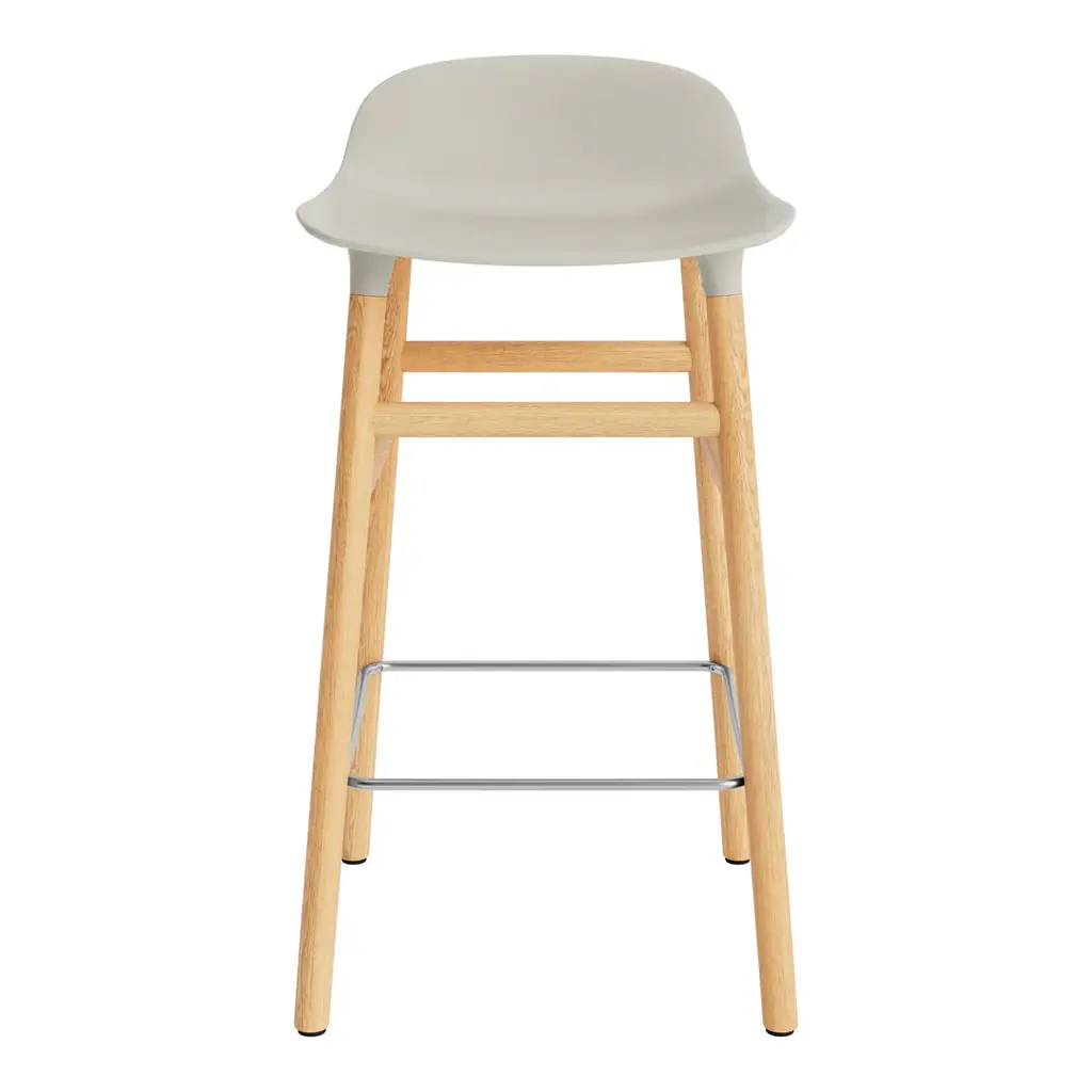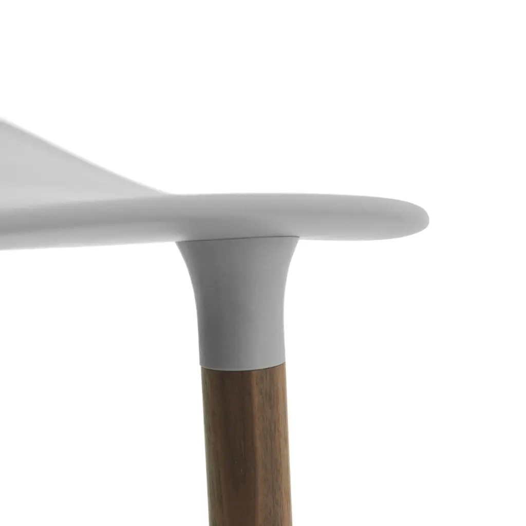 True to Form. All the variations of Danish designer's Simon Legald's Form Collection for Normann Copenhagen hew to his original vision. Here, his seamless polypropylene shell chair morphs into a low-backed stool offered in either counter and bar heights. More than 20 prototypes were sampled over 3 years until arriving at the final variation of molded plastic seat and frame—show here in walnut.