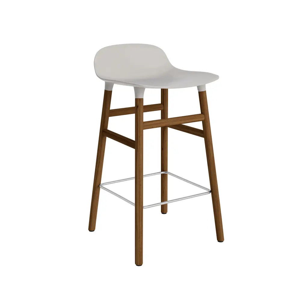 True to Form. All the variations of Danish designer's Simon Legald's Form Collection for Normann Copenhagen hew to his original vision. Here, his seamless polypropylene shell chair morphs into a low-backed stool offered in either counter and bar heights. More than 20 prototypes were sampled over 3 years until arriving at the final variation of molded plastic seat and frame—show here in walnut.