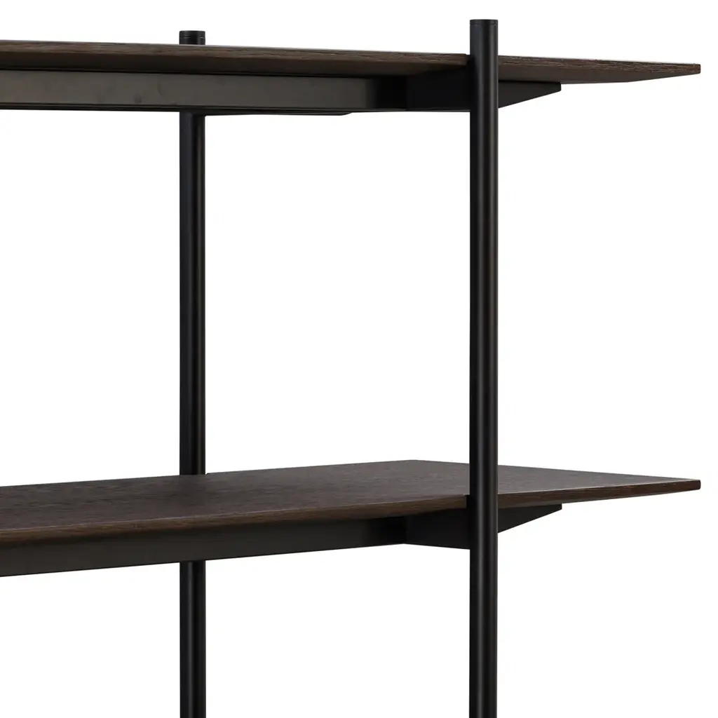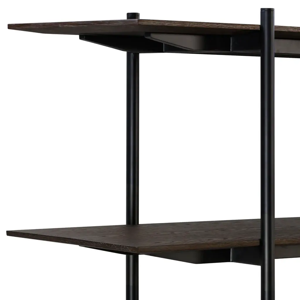 The Formal Shelving System redefines contemporary storage with architectural precision and designer elegance. Created by renowned Swedish designer Jonas Wagell, this sophisticated system transforms spaces through its harmonious balance of form and function. Engineered with remarkable simplicity, the system consists of just seven essential components that create endless possibilities. The sleek horizontal shelves in rich dark brown stained oak feature solid oak edging and beveled details that impart a sense of lightness, while the precisely crafted black powder-coated steel frame provides structural integrity through subtle, refined joinery. What distinguishes the Formal system is its exceptional versatility. Configure it as a striking wall unit or as a freestanding room divider that elegantly structures larger interior landscapes. The system adapts to varying heights, allowing you to create dynamic, asymmetrical compositions that reflect your personal aesthetic. Complete the design with complementary accessoriesleather-finished trays, magazine stands, and book supportseach crafted with the same meticulous attention to detail. Wagell's architectural background and graphic design sensibility are evident in every element of this luxury shelving system, delivering a visual statement piece that brings sophisticated organization to contemporary living environments.