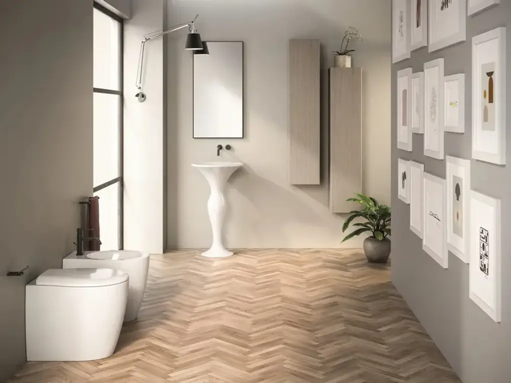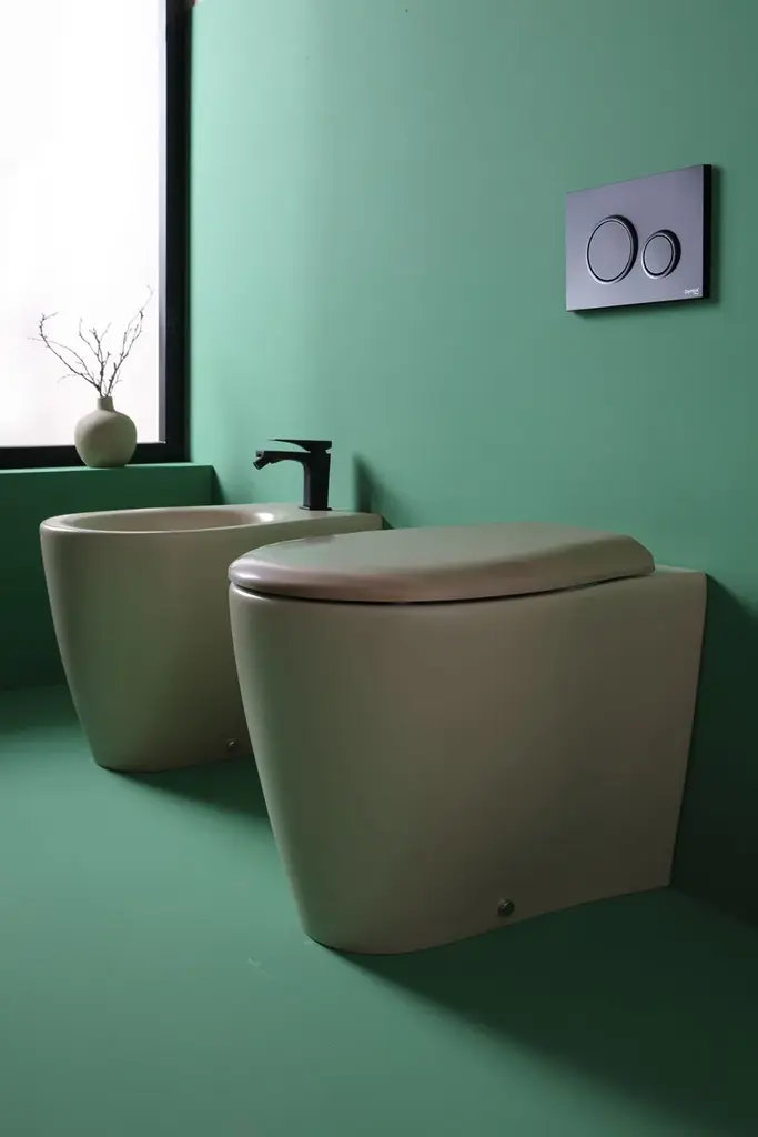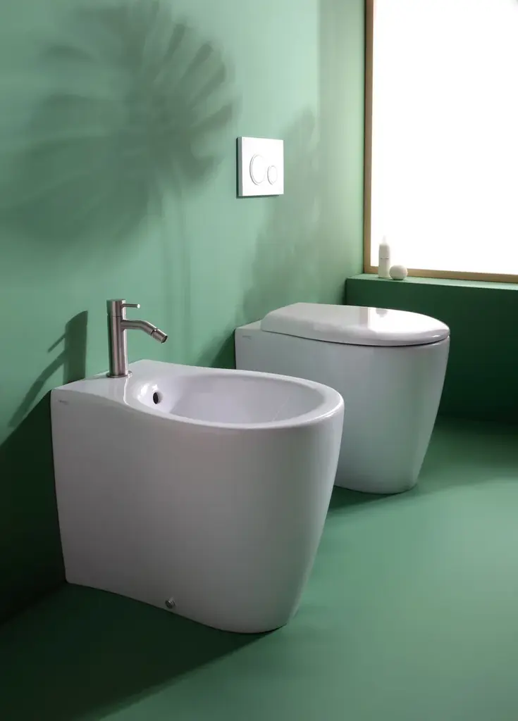 FORMOSA is a floor-standing toilet with installation flush with the wall and with Rimless technology, in Vitreous China available in different colors.This modern style toilet from the FORMOSA series is a floor-standing toilet with a back-to-wall installation. This type of installation is able to ideally hide the drains and toilet connections, giving the bathroom a clean look. Furthermore, it is a rimless model: thiswill prevent dirt and bacteria from concentrating in the typical rim which in this case, in fact, is not present.Between classic and contemporary, soft shapes are created by water and history giving to this new range a strong personality. Formosa arouses a warm, friendly feeling. A special solution for the pedestal results in an organic, yet simple and happy. The wall hung semi pedestal is truly amazing, the design is like a drop falling.Formosa range is divided into two washbasins “families”: round/oval and rectangular to provide a total of 12 options arranged with full and semi pedestals, wall hung or sit on, combining with two options of wc sanitary wares, wall hung and back to wall. Two ranges of accessories for washbasins complete the Formosa line.'