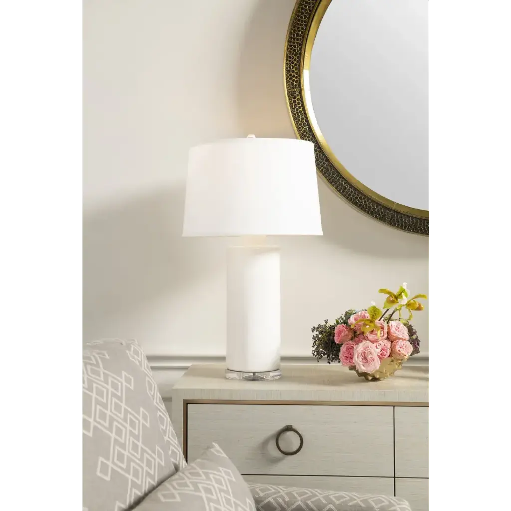 Formosa is the Portuguese word for “beautiful,” and it’s not hard to see how our Formosa Lamp earned its name. The design speaks to the beauty of simplicity, with a broad yet elegant column shape realized in ceramic. Its organic impression is underscored by its soft white cloud finish and sheen of lacquer. The overall lightness of its form is finalized with a clear acrylic base, making it seem like the lamp is floating on air. In bright, cool-toned rooms, the Formosa adds a breath of springtime freshness. Customize with one of our classic shades, sold separately.
