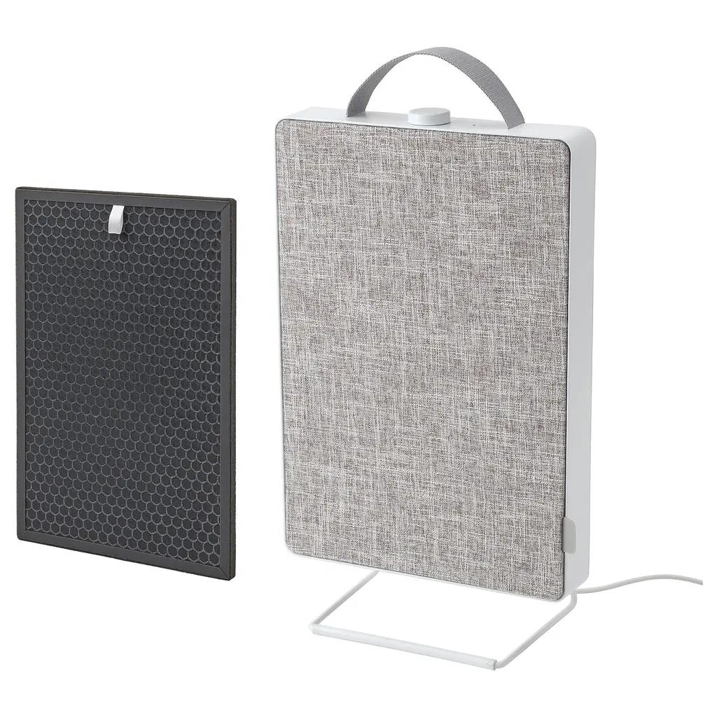 FÖRNUFTIG Air purifier/additional gas filter - white. You can choose to hang FÖRNUFTIG on the wall or place it on the floor by using the included floor stand. Particle filter and gas filter included. Suitable in various rooms of the home, even in the smallest children's rooms.