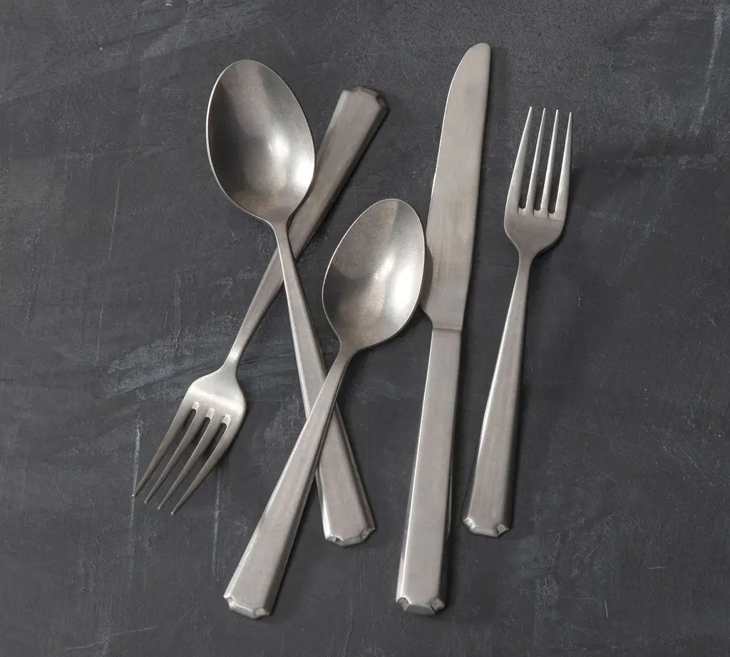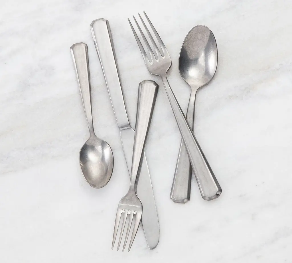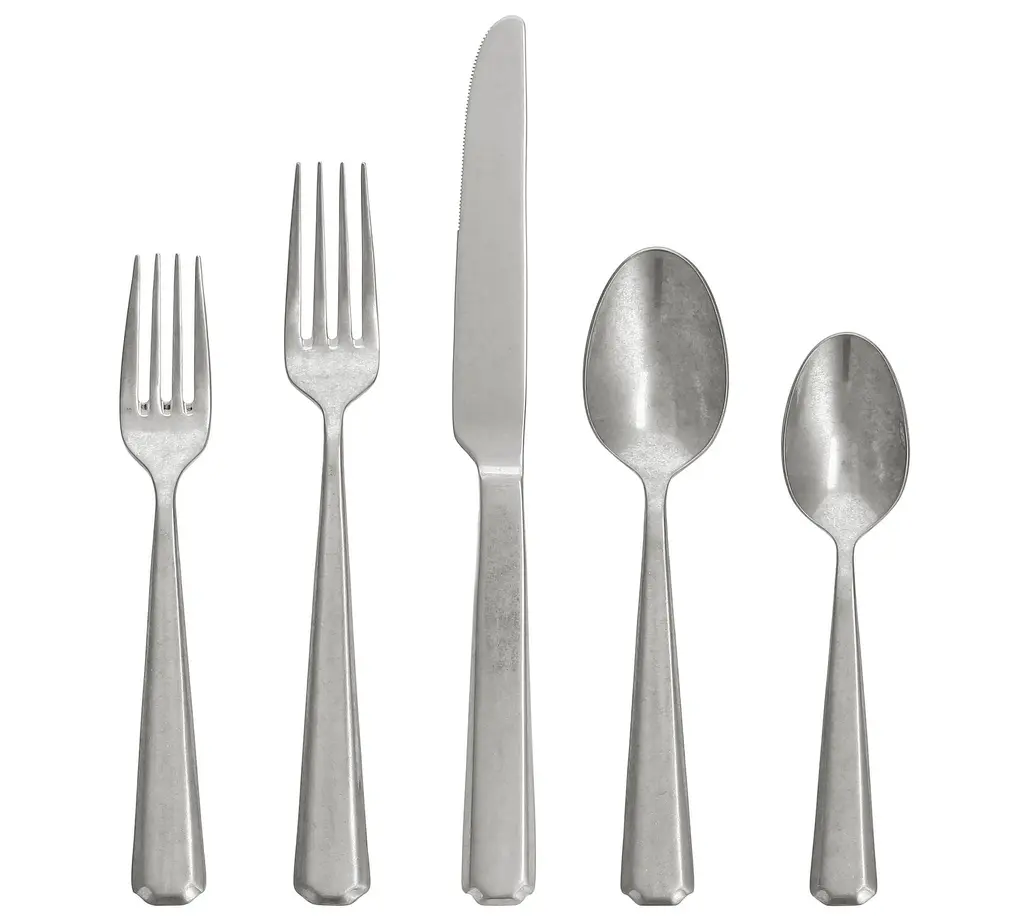 Taking notes from Victorian-era design, the decorative edge and patinaed tumbled finish of the Valen Tumbled Flatware have all the appeal of a coveted antique set. The set includes everything you need for a formal full-course meal, but the sturdy stainless steel and dishwasher-safe design makes it perfect for everyday dining too.