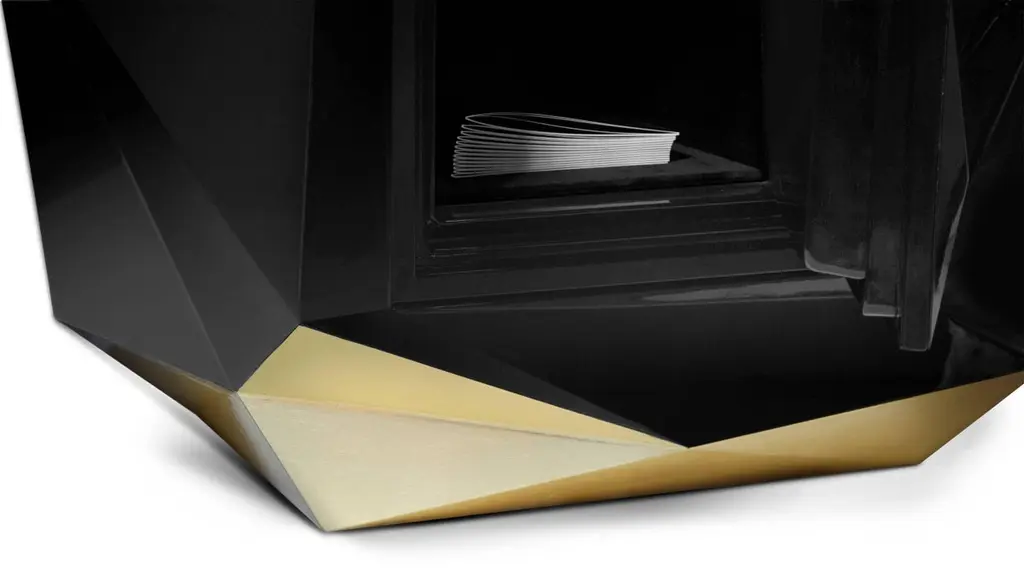 Fortnox Safe In Black Lacquered Wood High Gloss Finish And Gold Leaf