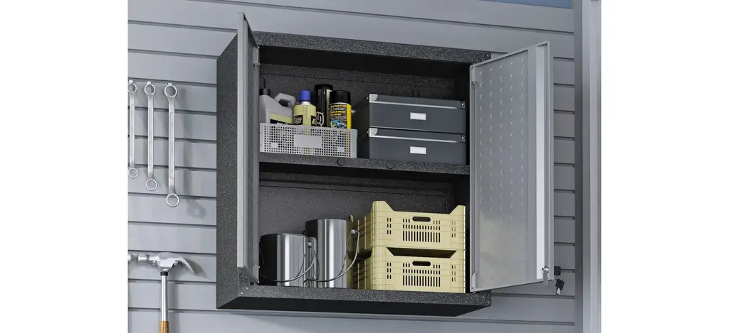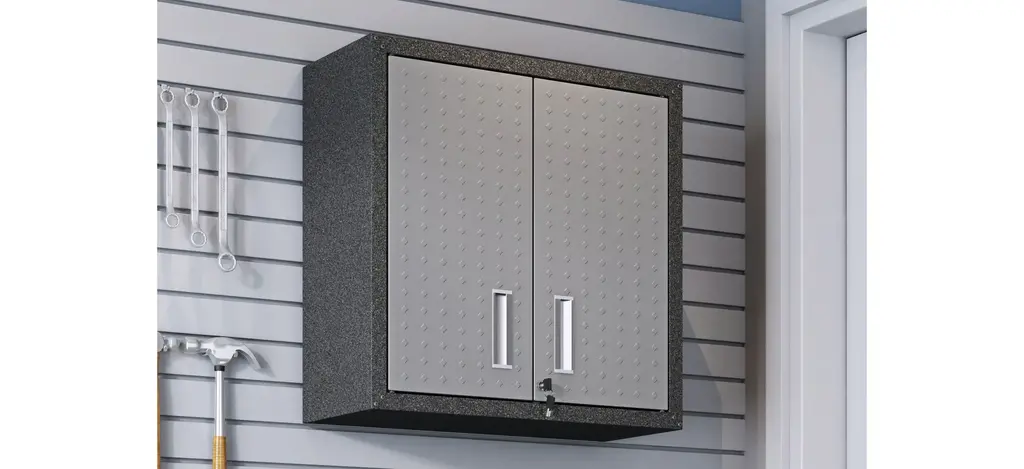 The Fortress Floating Cabinet is a garage essential, featuring one adjustable shelf and double doors, perfect for stashing tools and accessories. Durable and built to last, the cabinet includes wall brackets for added safety, and a door lock and key to help keep items secure and detract from tarnishing.