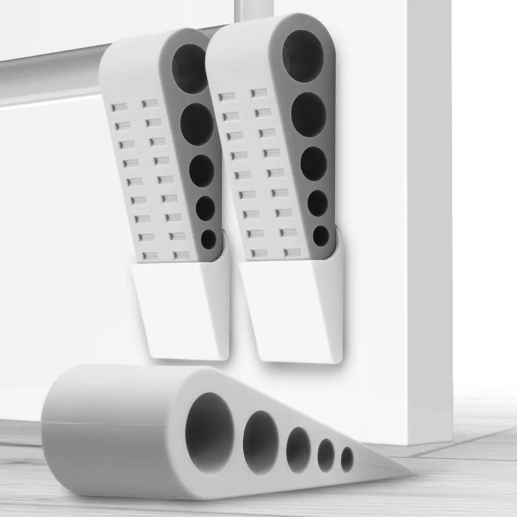 Rugged and Durable Rubber Door Stopper with Holder Fosmon's Heavy Duty Rubber Door Stopper is made of a highly durable thermoplastic elastomer. Its 5-hole design allows for it to compress and secure the door more effectively. The door stopper is strong enough to handle any surfaces, from cement to linoleum. Additionally, you can double stack them to use on doors with higher thresholds. Effective on All Floor Materials Securely keep any door open with the Fosmon Rubber Door Stopper. The TPE rubber stopper produces superior wedging on linoleum, cement, ceramic, tile, stone, and even asphalt. Includes Holder for Easy Storage Never worry about losing the stoppers. Every door stopper comes with a self-adhesive carrier. Simply peel the backing from the carrier and apply directly to the door being propped open. Non-toxic and Odorless for You and Your Family Every rubber door stopper is tested to the latest standards to be non-toxic and odorless. Every single door stop has been EN 71, FDA, RoHS certified to be safe for use around children. Package Includes 3x Rubber Door Stopper3x Door Stopper Holder1x Owner's Manual Model: 51062HOM