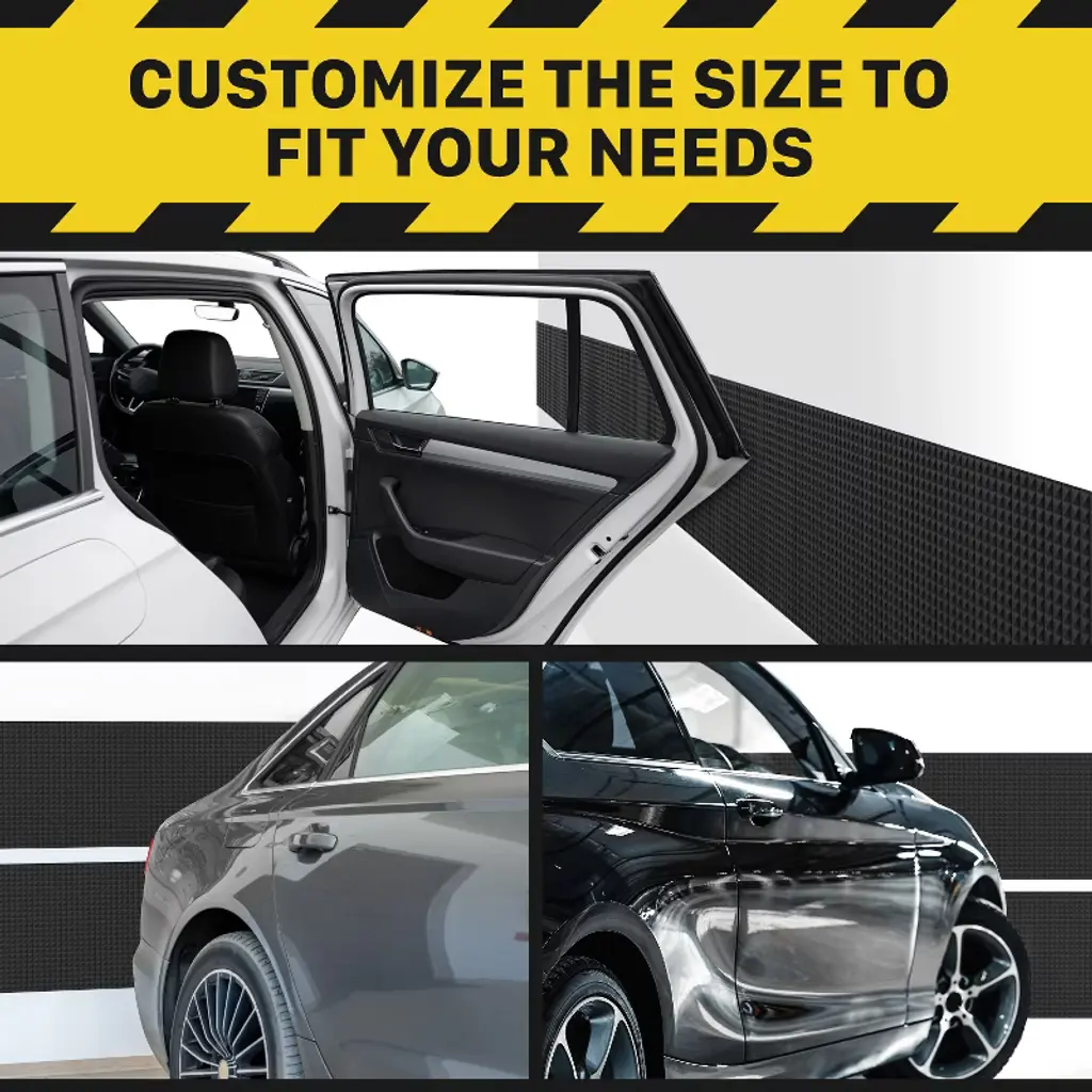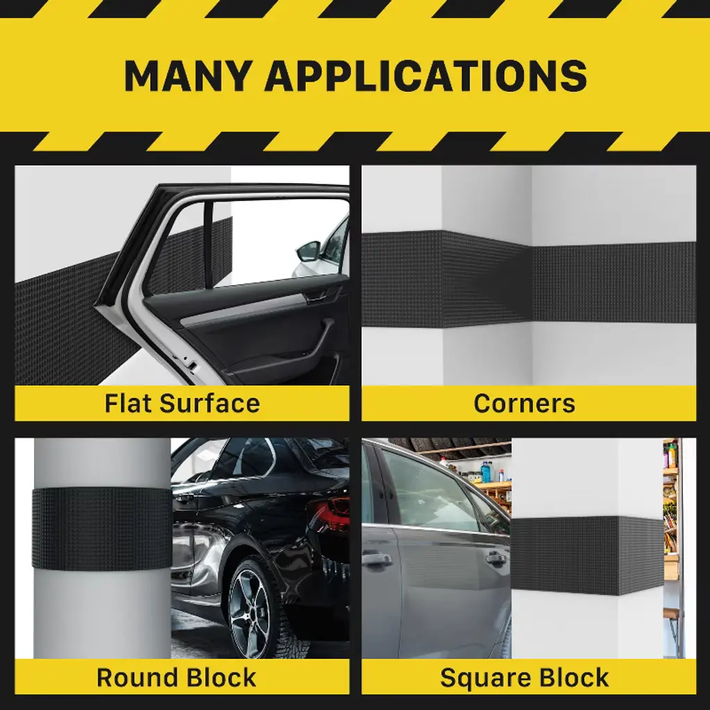 Great Protection Fosmon’s 2-pack of garage wall guards protects your car’s doors or bumpers from hitting the garage wall. The guards come with 0.26 inch / 6.5 mm thick protectors, which are able to absorb 330 pounds of impact. Each strip is 78.7 inch / 2m long, able to protect both the front and back doors of your car and giving you peace of mind when you get in and out of the car in the garage. Safe and Eco-Friendly The garage wall and bumper protectors are made of EVA foam, which is odorless, BPA free, and contains no chlorine or other toxic substances. It is safe for adults and kids. EVA foam is also recyclable and reusable, making these guards more environmentally friendly. Additionally, they are water-resistant and scratch-resistant. Installation is a Breeze Fosmon’s protectors are self-adhesive, making installation as easy as 1-2-3. Simply peel off the adhesive cover and apply the protector to the wall, no tools required. The strip is flexible enough to fit many wall shapes, such as flat, circular, or angular. The fiberglass mesh on the adhesive makes the wall guards stay firmly attached, and will leave no residue after removal. Wide Applications The 2-pack wall and car door edge guards can be used in many different locations. They can prevent bumps and scratches in a garage, warehouse, factory, parking lot, and more. They can also be used indoors to prevent youngsters or the elderly from bumping into walls or furniture. Specifications Material: EVAAdhesive: Fiberglass MeshImpact Absorption: 330lbSize: 78.7 x 7.9 x 0.26 inch / 2000 x 200 x 6.5 mm Package Includes 2x Garage Wall Guards Model: A1763