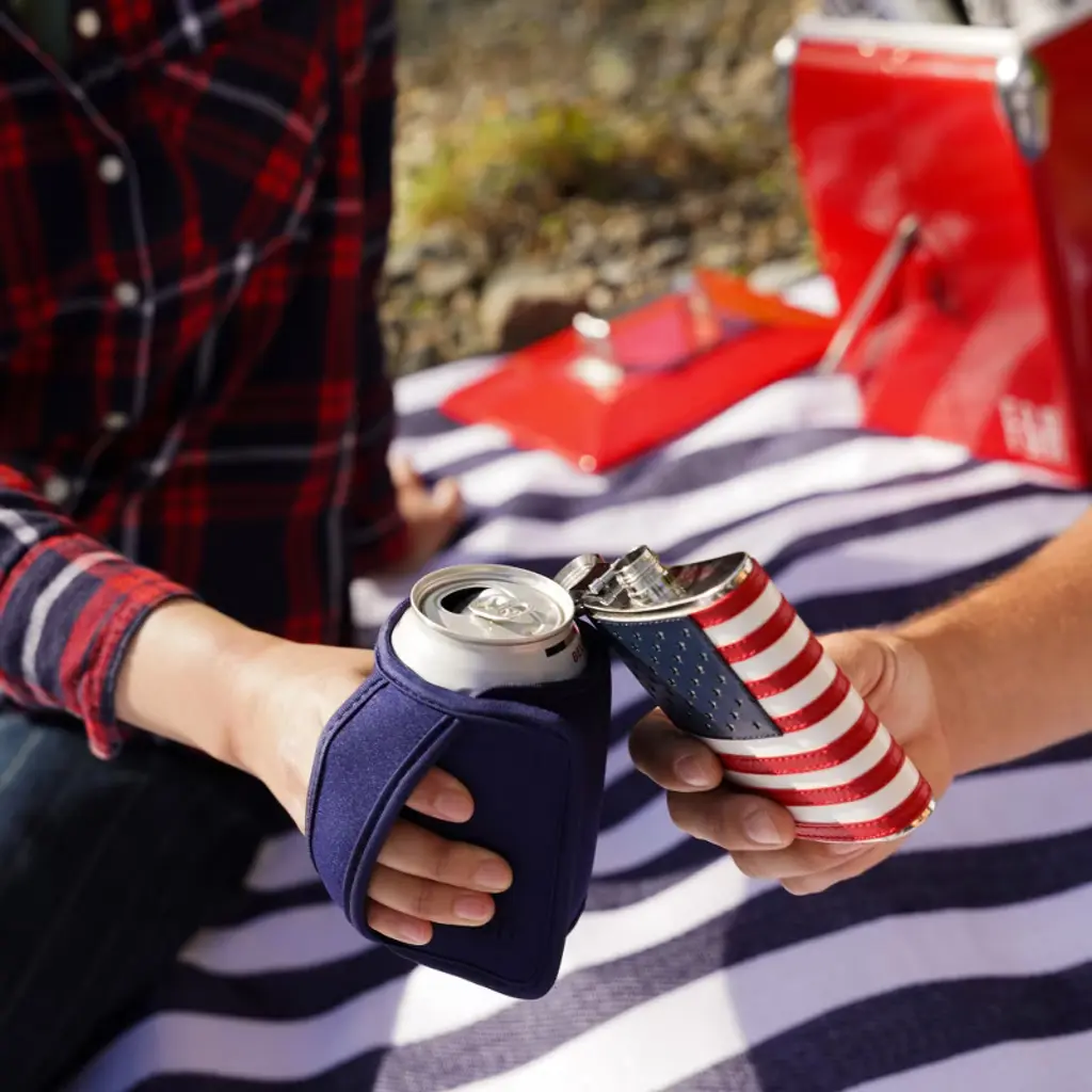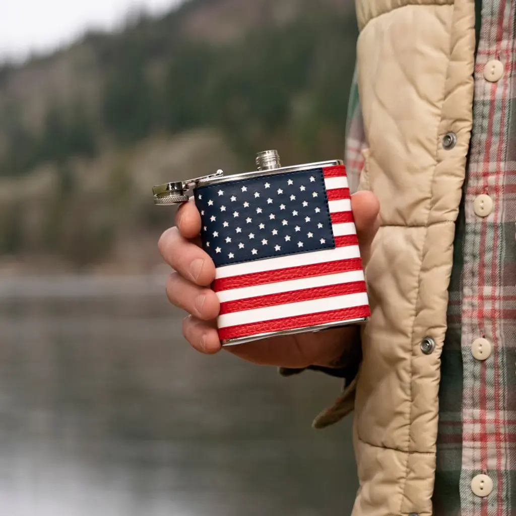 This is America, and we drink American - so fill the American Flag Flask up with some down-home distillate and show your true colors. With Old Glory in your pocket, every day is Independence Day. Accommodates 6 oz comfortably Stainless steel construction One word: America Includes funnel Makes a great gift Disclaimer: Flasks aren't meant for storing alcohol long-term. Leaving liquor in a flask for too long might lead to undesirable flavors. To keep things fresh, finish or replace the contents within a few days. Cheers and happy sipping!