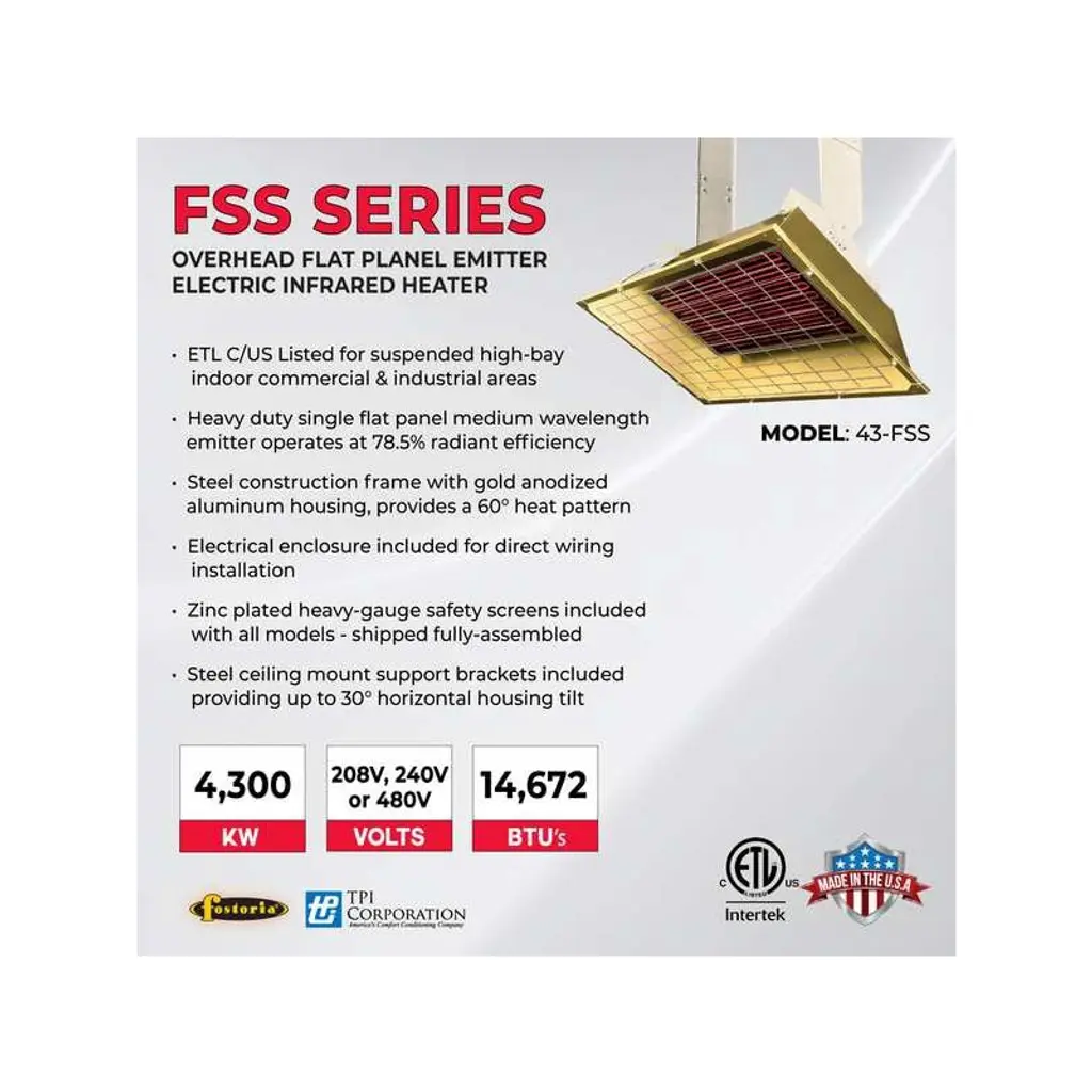Fostoria Infrared Overhead Electric Heater P43-fss-3