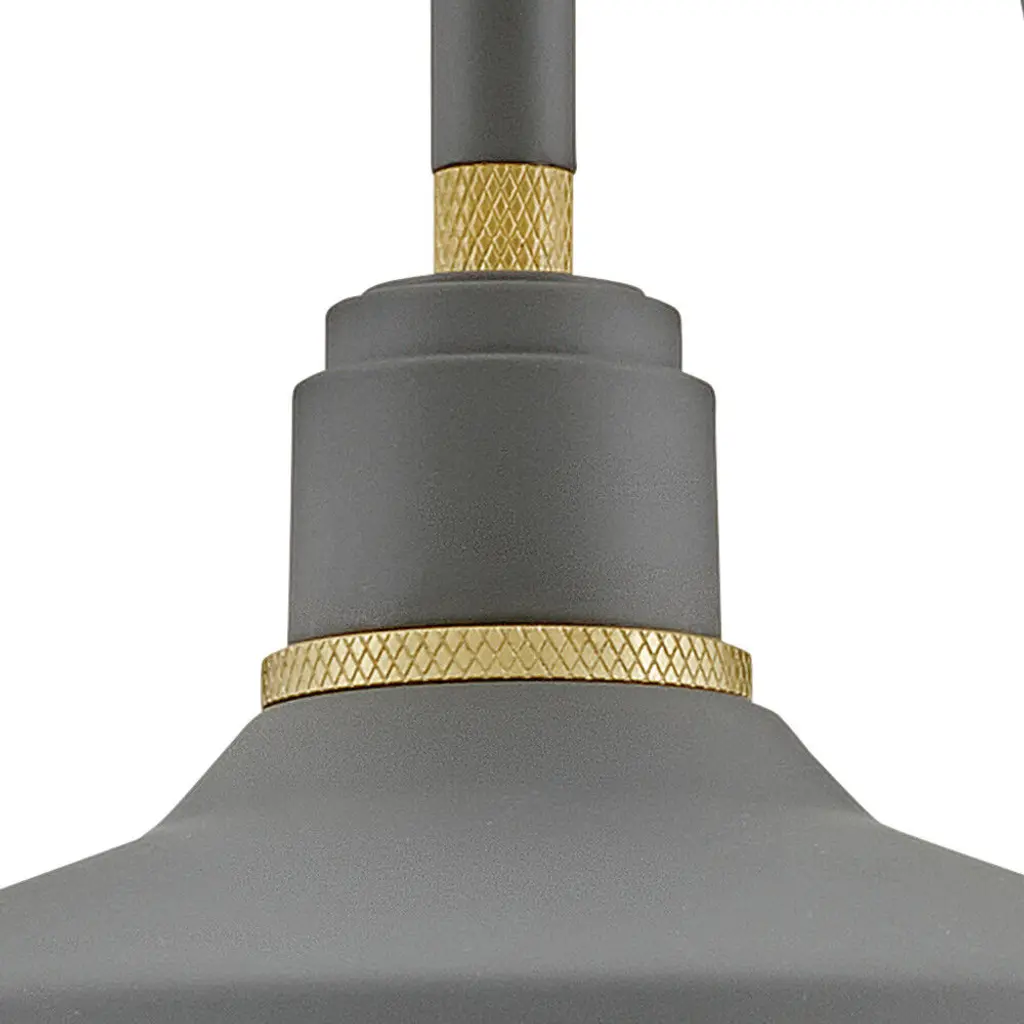 Decidedly industrious, Foundry is reinventing purposeful lighting. Focused and direct, the sturdy aluminum shade features knurled brass details to offset the Dark Matte Grey finish while casting a uniform light. The simple, understated form plants a vintage aesthetic for both inside and outside spaces while offering mix and match options that customize the look.