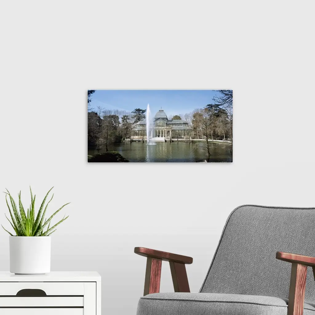 Fountain in front of a palace, Palacio De Cristal, Parque Del Buen Retiro, Madrid, Spain wall art for home and office decor. Discover canvas art prints, photos, mural, big canvas art and framed wall art in GreatBigCanvas.com's varied collections.