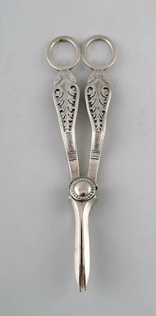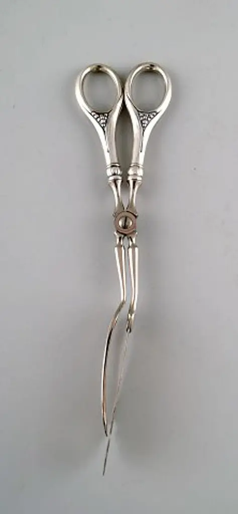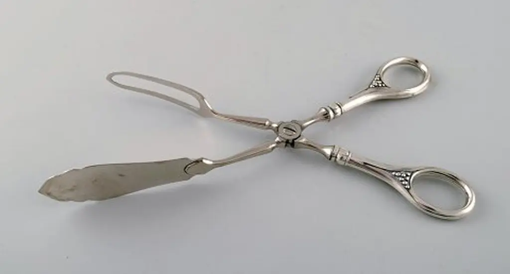 Four Danish And European Scissors And Tongs In Silver, Grann & Laglye 830s.