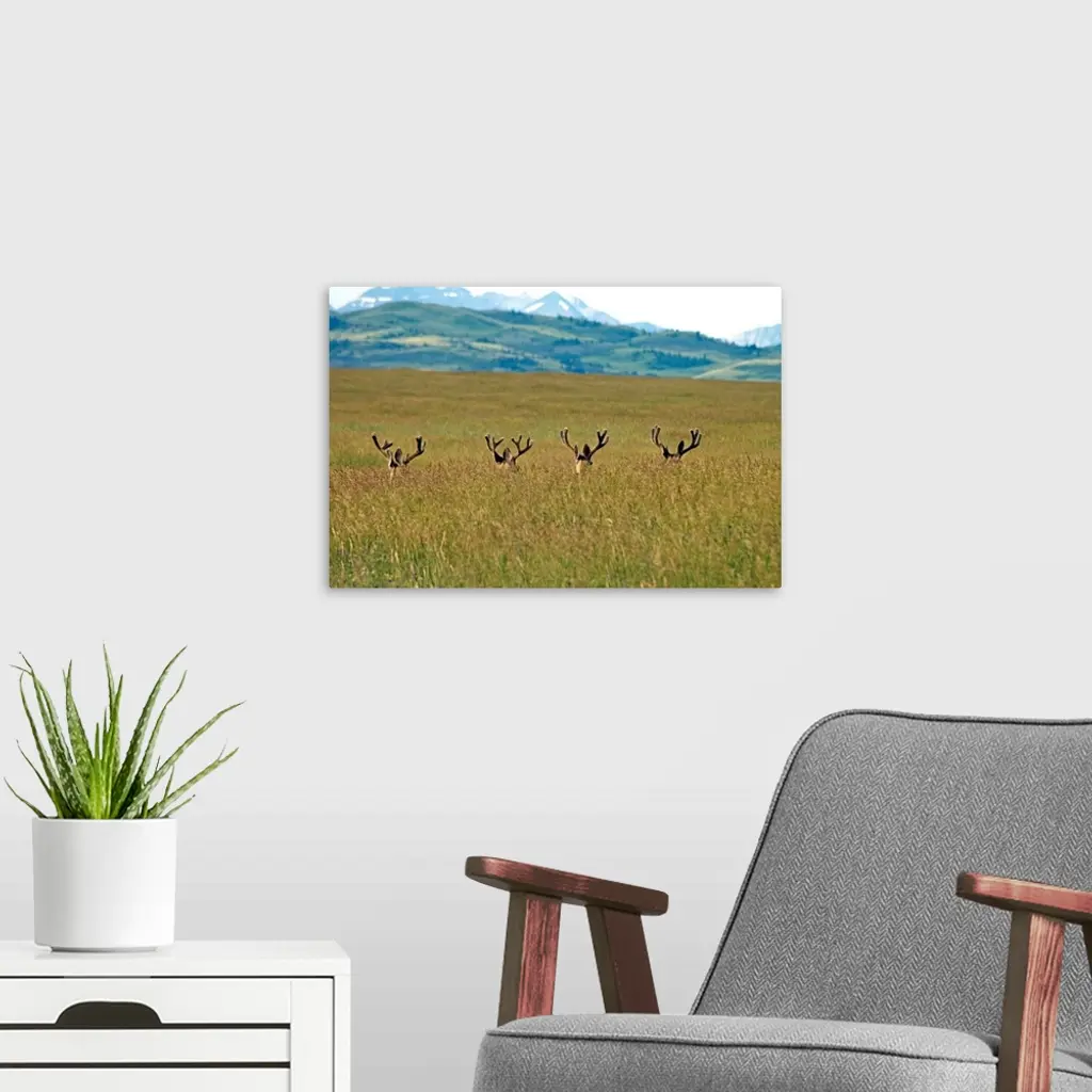 Four Mule Deer Bucks, Rockies Foothills, Southwestern, Alberta, Canada wall art for home and office decor. Discover canvas art prints, photos, mural, big canvas art and framed wall art in GreatBigCanvas.com's varied collections.
