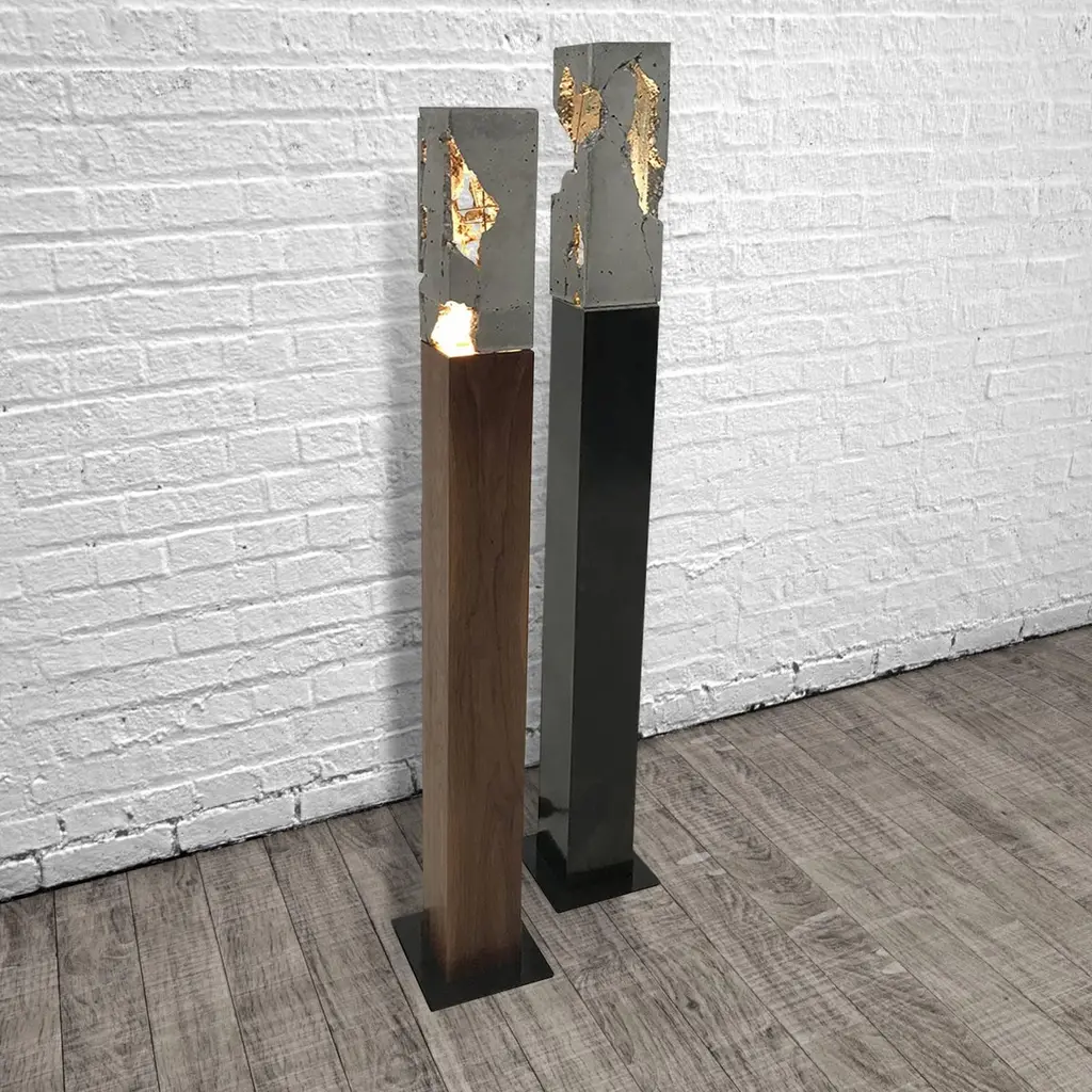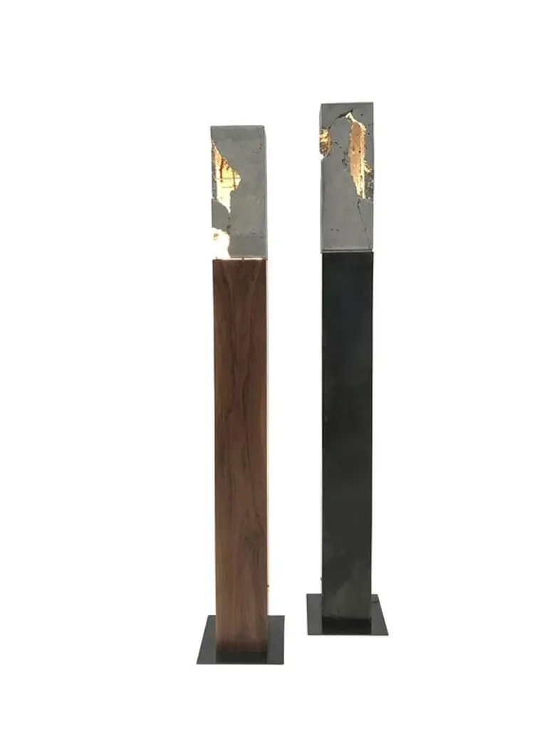 Fractured Cast-Concrete Standing "Scarpa Light" Walnut Or Blackened Steel Base