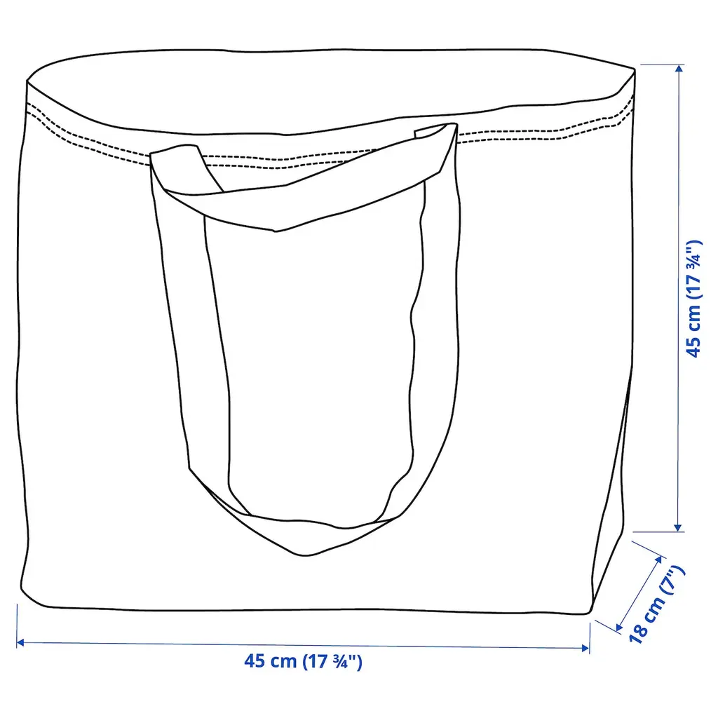 FRAKTA Shopping bag, medium - blue 17 ¾x7x17 ¾ "/10 gallon. Perfect for transporting most things, from laundry and shopping items to dry waste that you intend to recycle. Easy to clean, simply wipe with a damp cloth. Takes up little space to store as it folds flat.