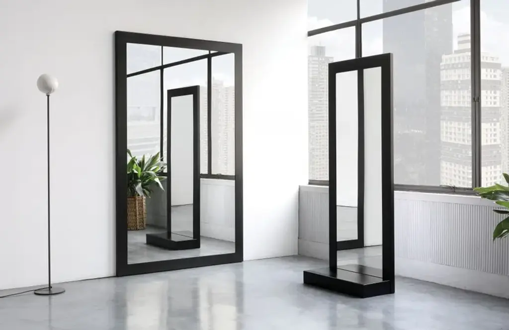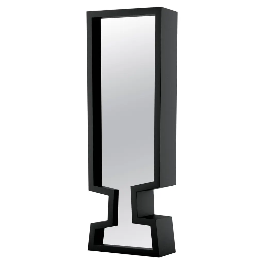Frame is a framed mirror with black phosphatized sheet steel.Characteristics and maintenance instructions:BIG IRONY products have intentionally not been painted becauseit is the surface irregularity the characteristic which makes them sospecial. The daily use will form stains forming a patina which rendersthe surface even more beautiful. To clean it use a non aggressive/soft detergent as it would be wood.