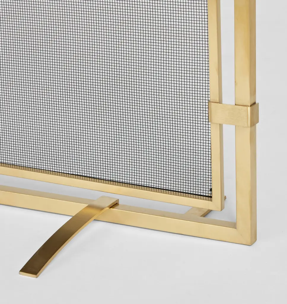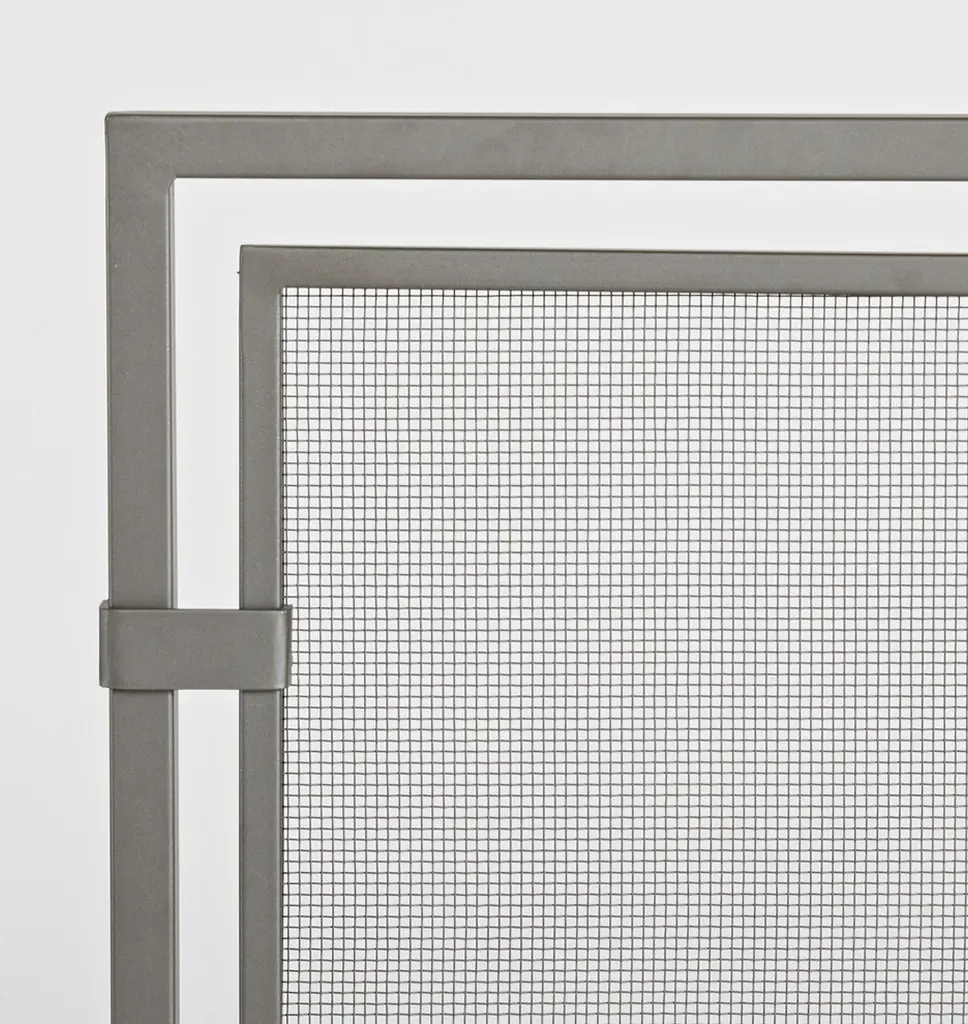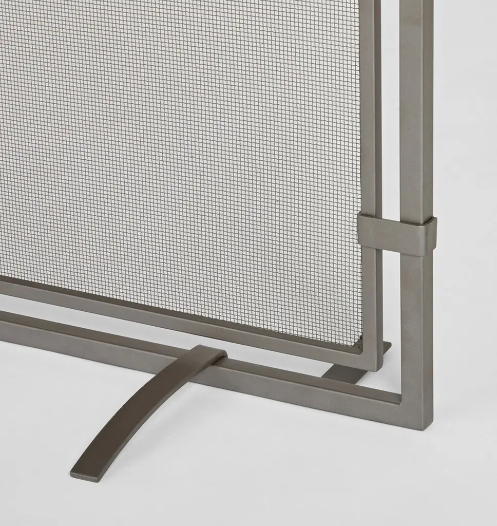 Classic yet contemporary, the Sinclair single panel fireplace screen has a heavy iron frame, narrow profile, and a natural iron finish.