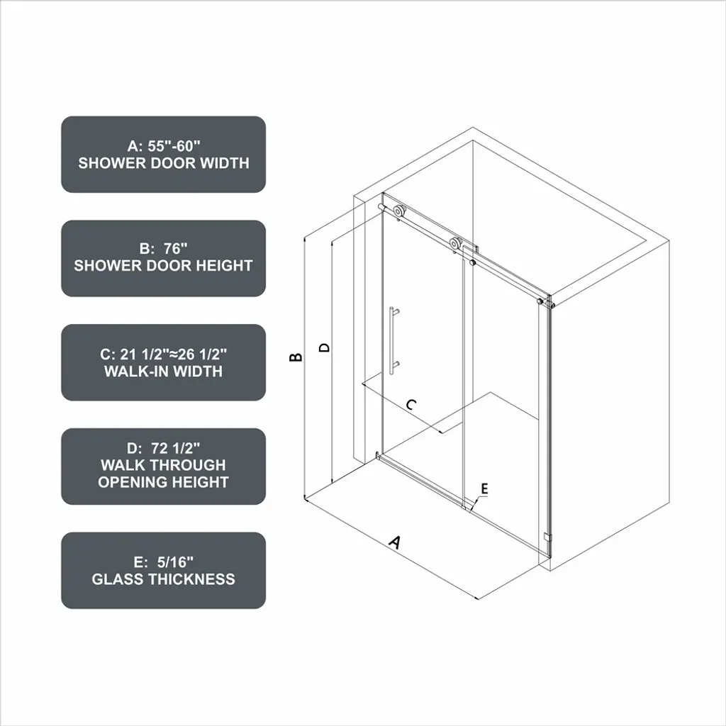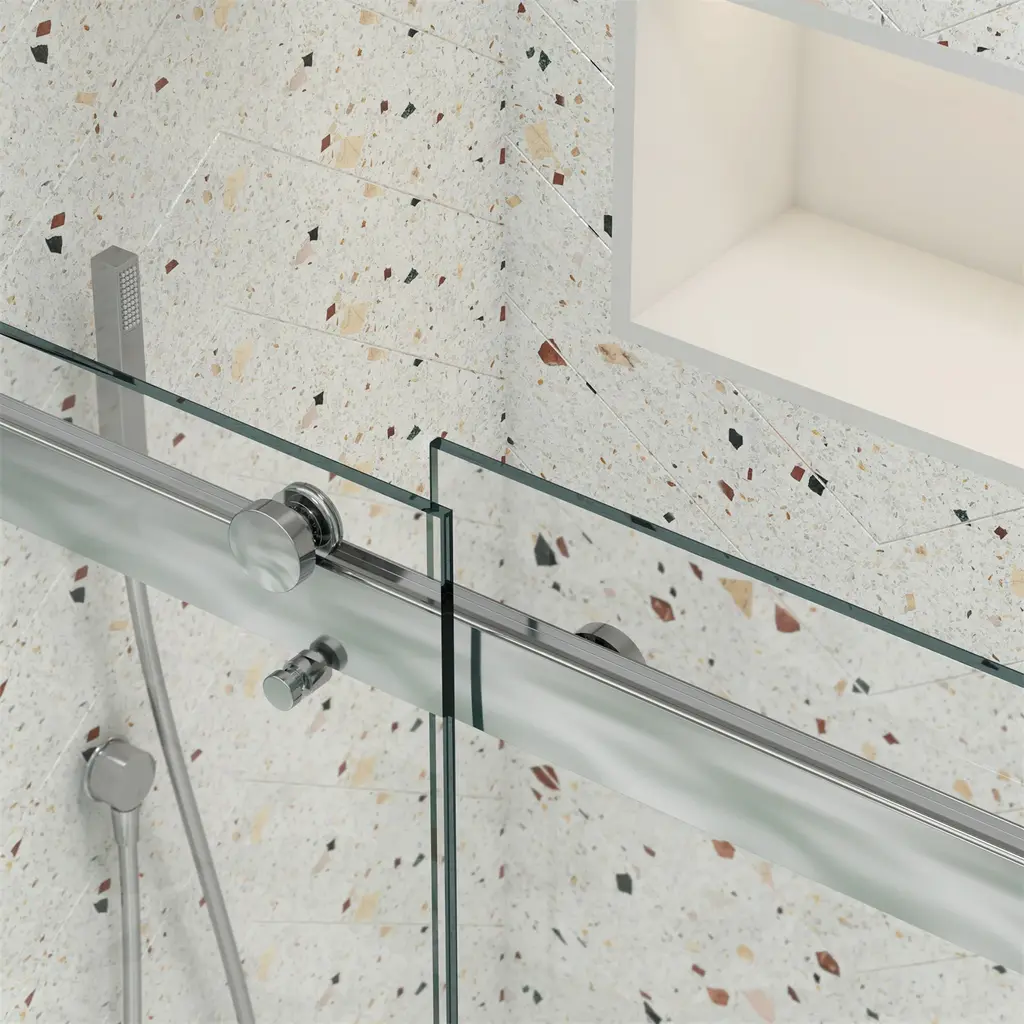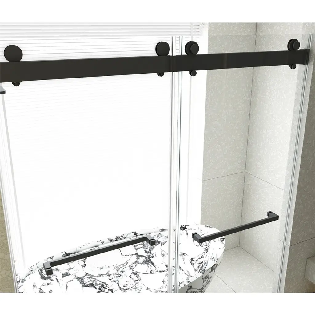 Frameless One Fixed & One Shifted Shower Door,stainless Steel Pulleys - Matte Black