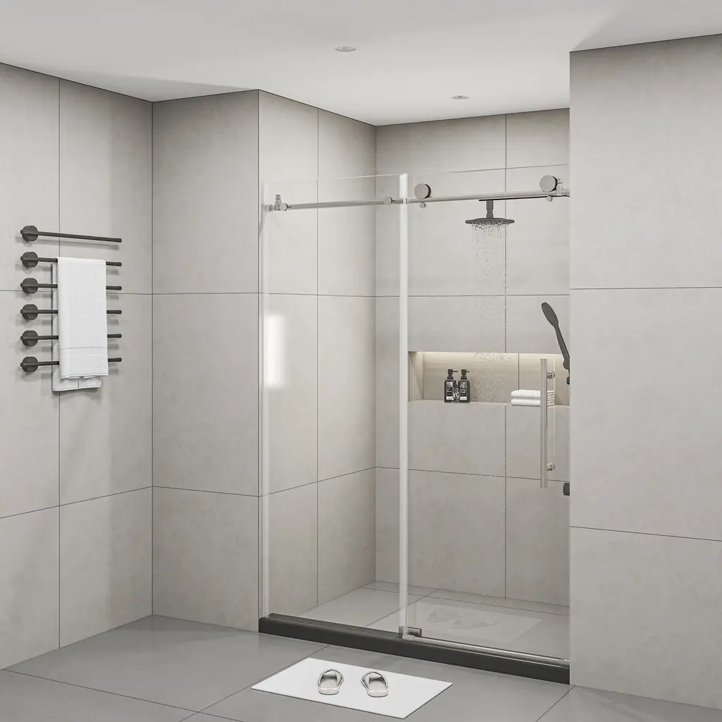 Frameless Shower Doors 60" Width X 76"height With 5/16"(8mm) Clear Tempered Glass, Brushed Nickel Finish - Clear