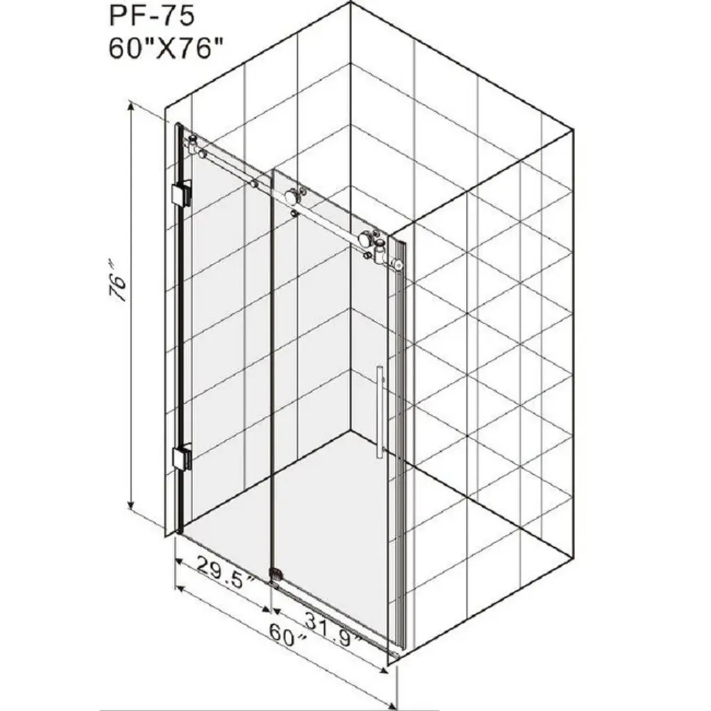 Product Features · FRAMELESS DESIGN: The MESA Frameless Shower Door offers a sleek and modern design, elevating the look of any bathroom. The clear tempered glass provides a spacious and open feel, while the stainless steel hardware and support bar adds a touch of elegance.· SAFE & DURABLE: The clear tempered glass is 5/16" thick. The glass is also coated with a Nano Technology protective layer, making it easy to clean and resistant to stains and scratches. The stainless steel hardware is made of high-quality materials and is corrosion-resistant, ensuring long-lasting durability.· EASY INSTALLATION: The shower door is designed for easy installation with the help of a professional plumber. The door can ONLY be installed on the right side.· WATERPROOF DESIGN: The shower door features a waterproof seal strip to prevent water from leaking out of the shower. The full-length clear seals on the door prevent water from escaping, keeping your bathroom clean and dry.Assembled Length (in.):60.00Assembled Width (in.):0.31Assembled Height (in.):76.00Weight (lbs.): 177.00Notes:Assembly RequiredThis product will ship to you in multiple boxes.Disclaimers & Disclosures:Contact US:After-sales Email Address: dhalcomb@doorise.comIf the item comes with any defect, damage(include damaged in transit) or missing partsand, please contact us with detailed images for free replacement or refund.